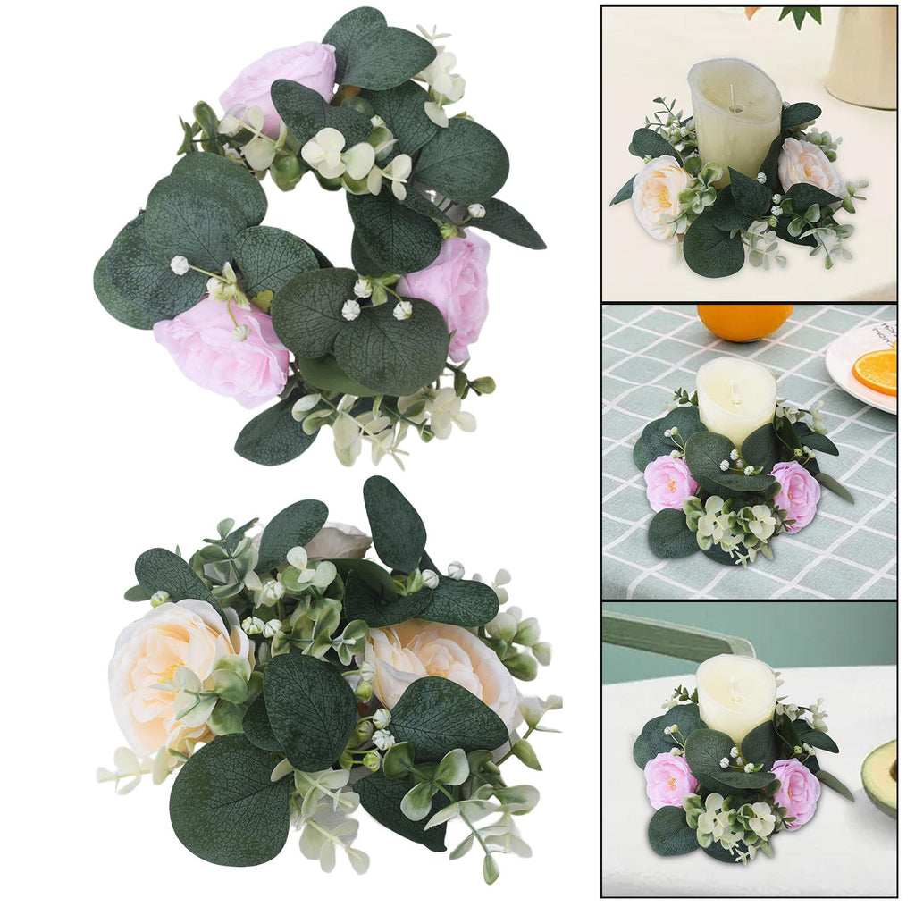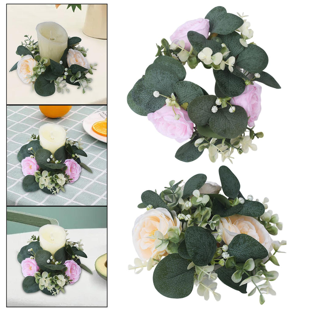 Maxbell Candle Ring Gifts Garland Greenery Wreath for Festival Dining Room Farmhouse Pink