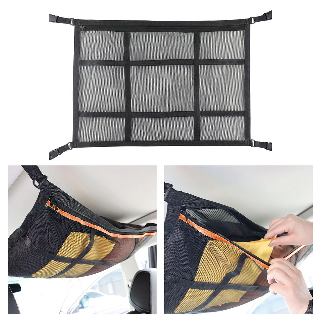 Maxbell Car Ceiling Cargo Net Pocket Car Roof Storage Organizer for Van Camping Orange