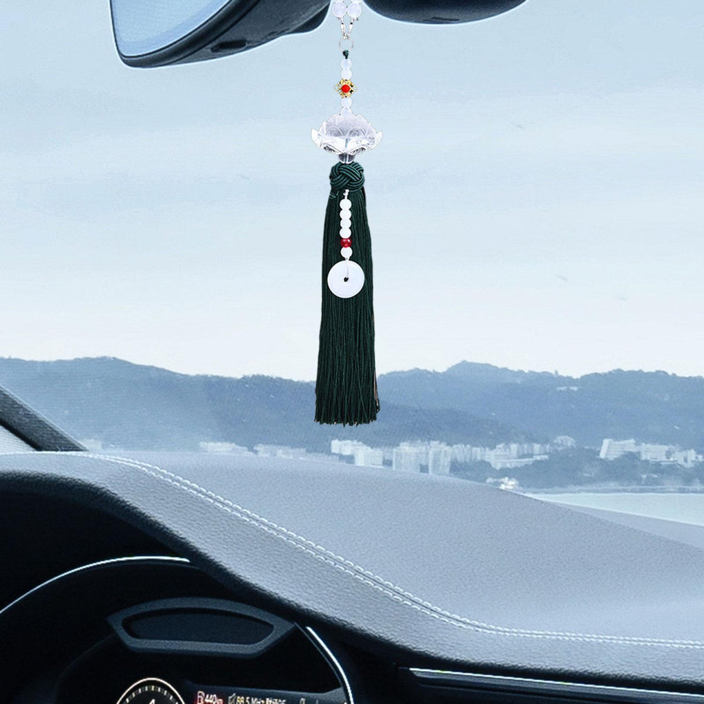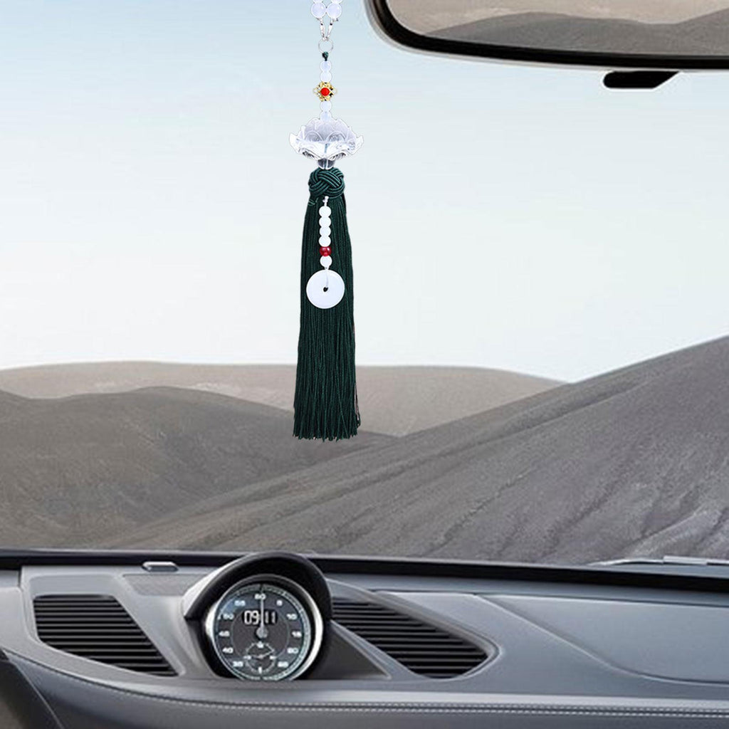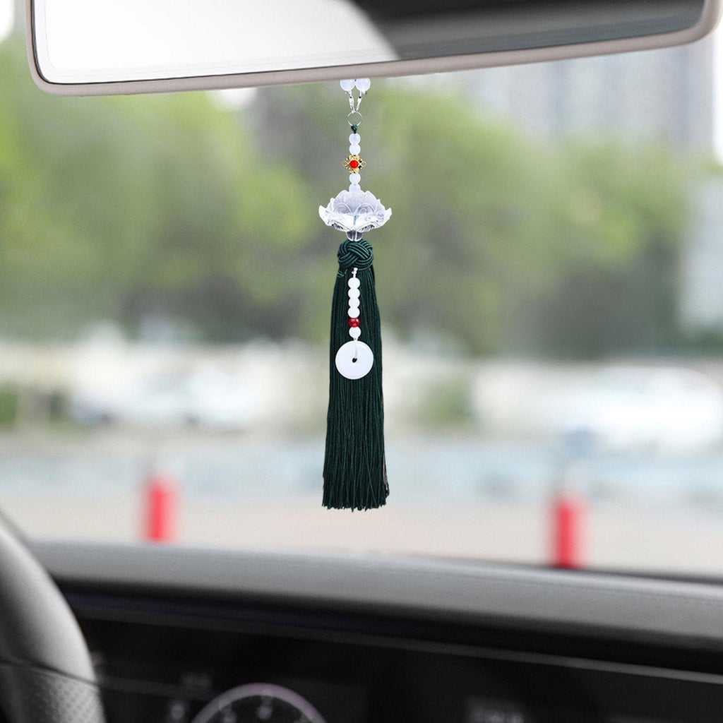 Maxbell Car Interior Lotus Pendant Dangling Tassel Craft Supplies Hanging Decoration Dark Green