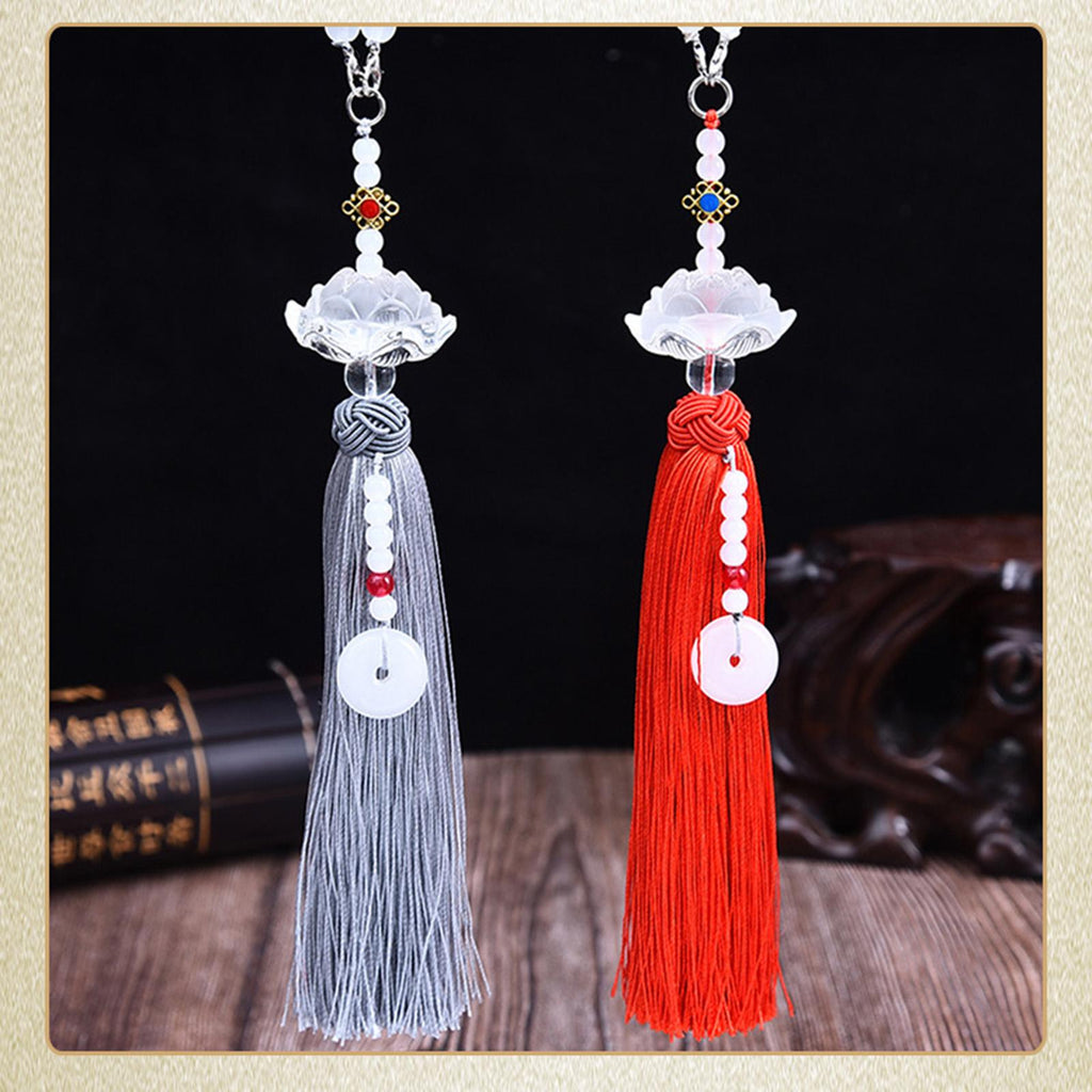 Maxbell Car Interior Lotus Pendant Dangling Tassel Craft Supplies Hanging Decoration Silver Gray