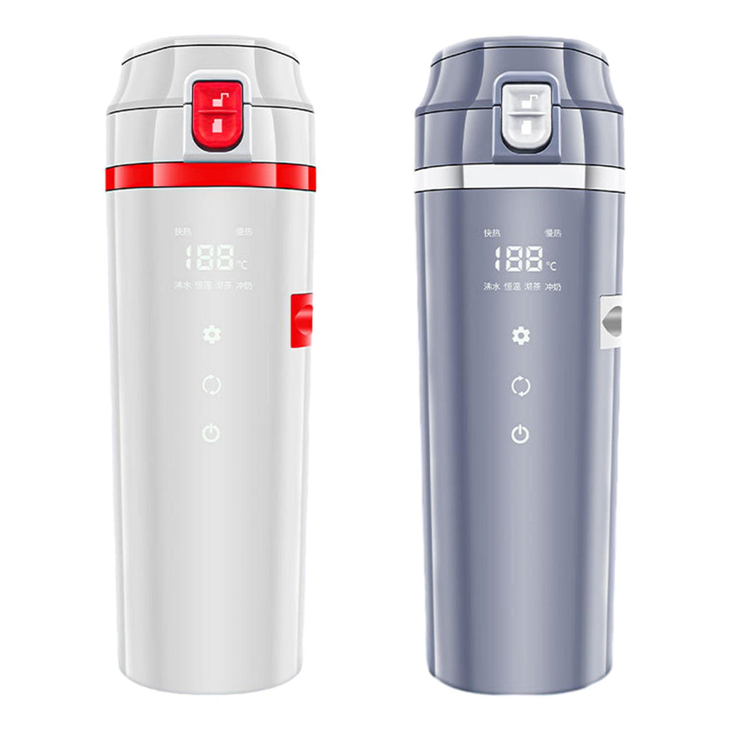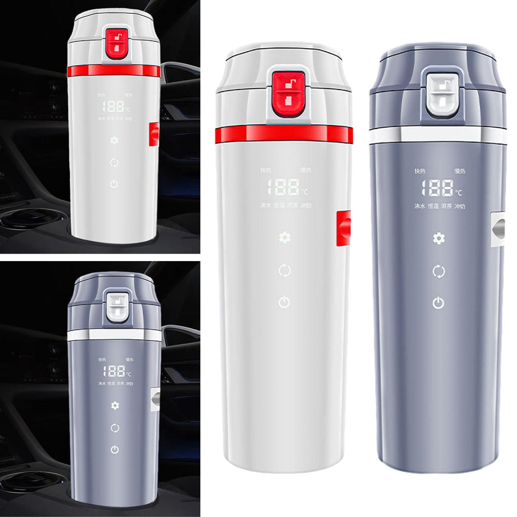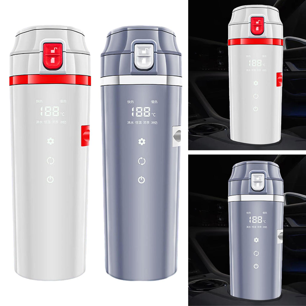 【Car Heating Cup】: car kettle boiler coffee cup with automatic heating function and temperature display, multi layer protection, constant temperature design, heat preservation, and Led Lamp to display the temperature in real time.