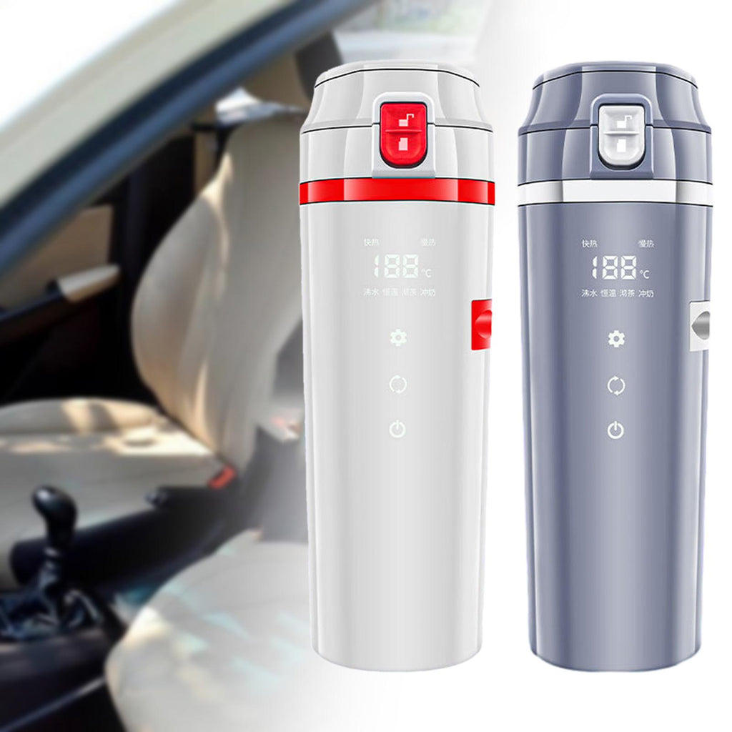 【12V/24V Universal】: Electric hot water cup for cars, small diameter water outlet, convenient for school, travel, camping, coffee and gift giving.