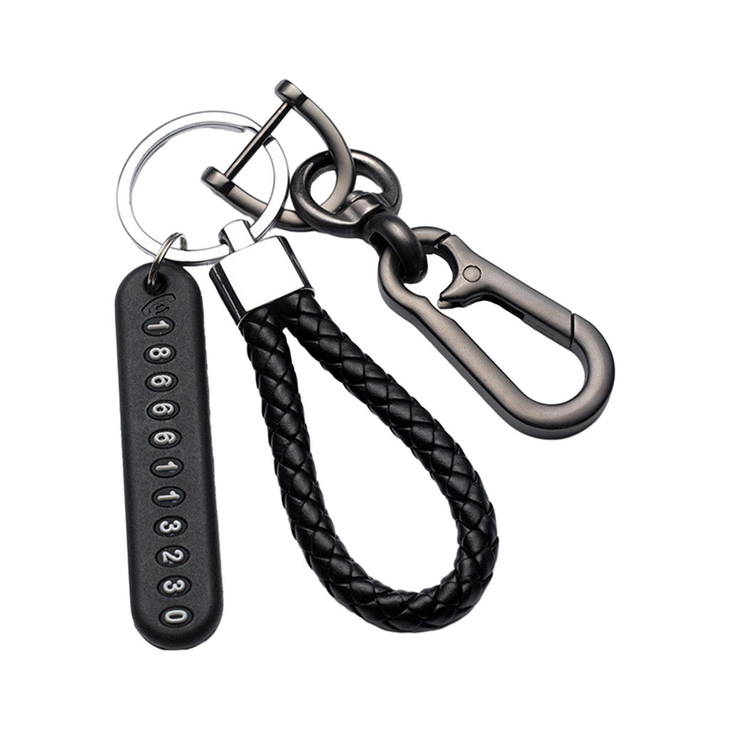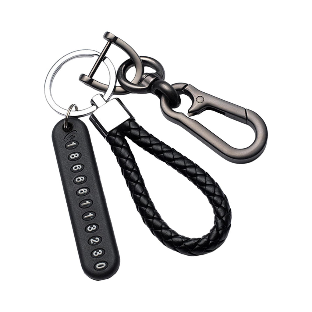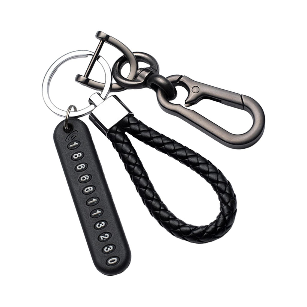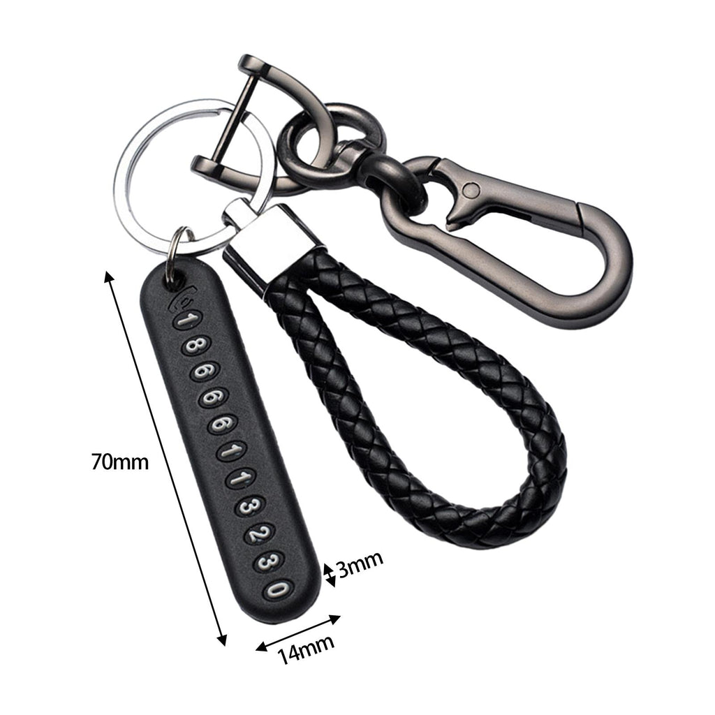 【Car Keychain】: The keychain set comes with an anti lost phone number plate, a metal horseshoe buckle, and a braided rope.