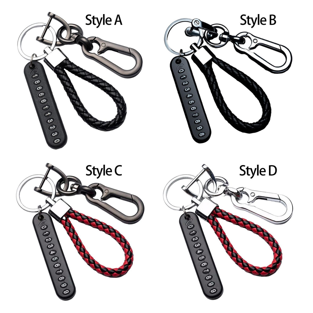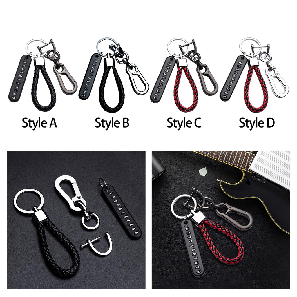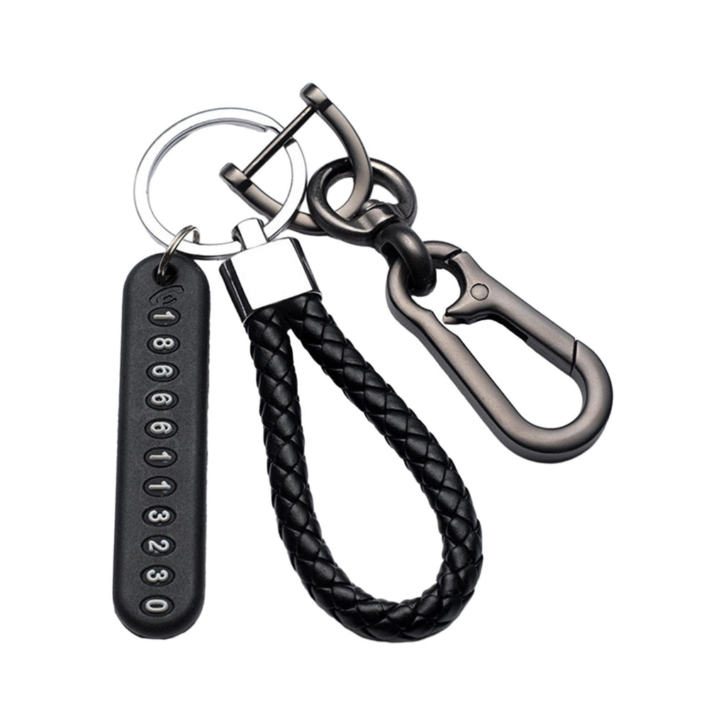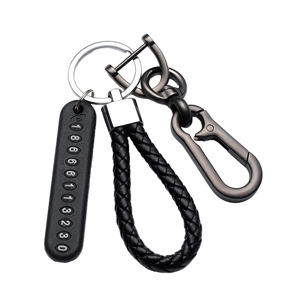 【Car Keychain】: The keychain set comes with an anti lost phone number plate, a metal horseshoe buckle, and a braided rope.