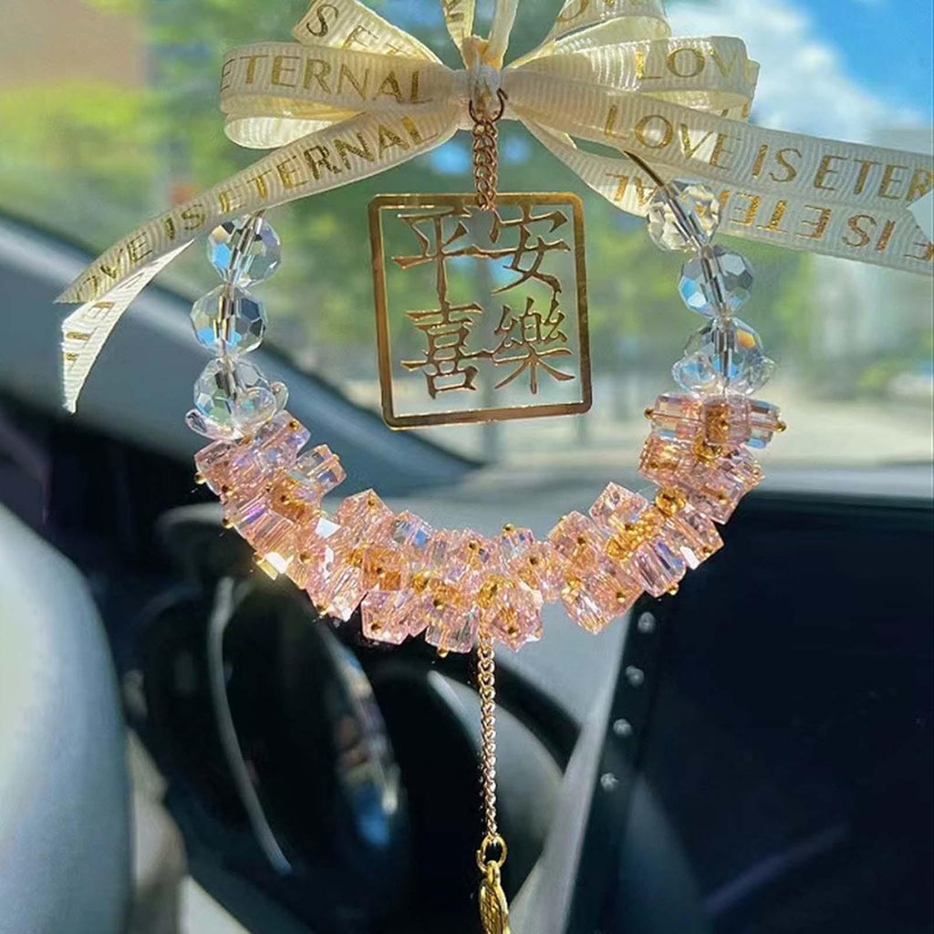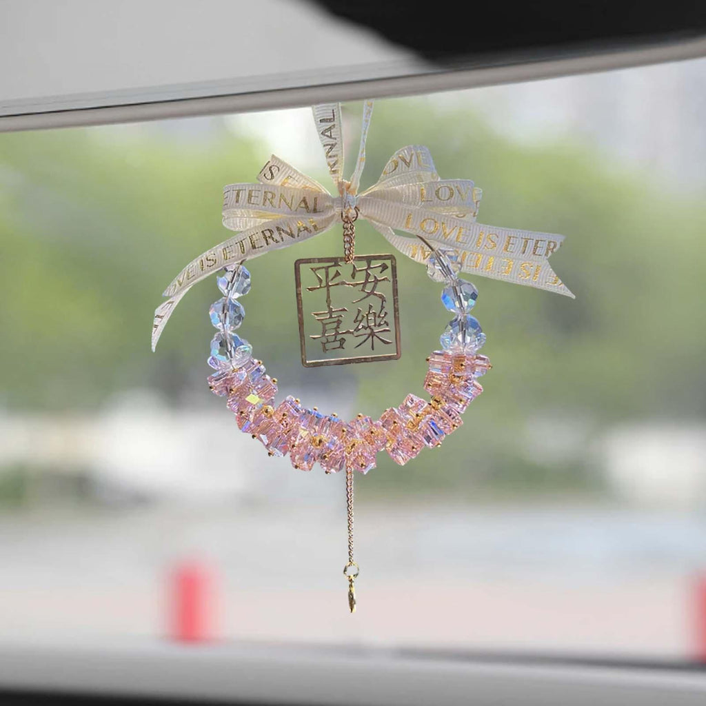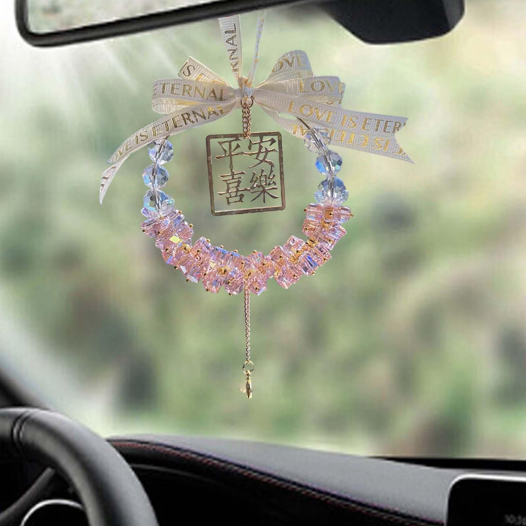 【Car Rear View Mirror Pendant】A round car interior decoration pendant, beautifully made and decorated with bows and Chinese characters, which means beautiful things.