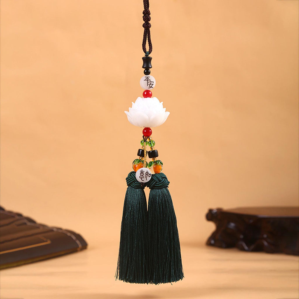 【Auto Interior Dangle】: Delicate car rearview mirror pendant, decorated with lotus decor, tassel pendant, excellent and beautiful.