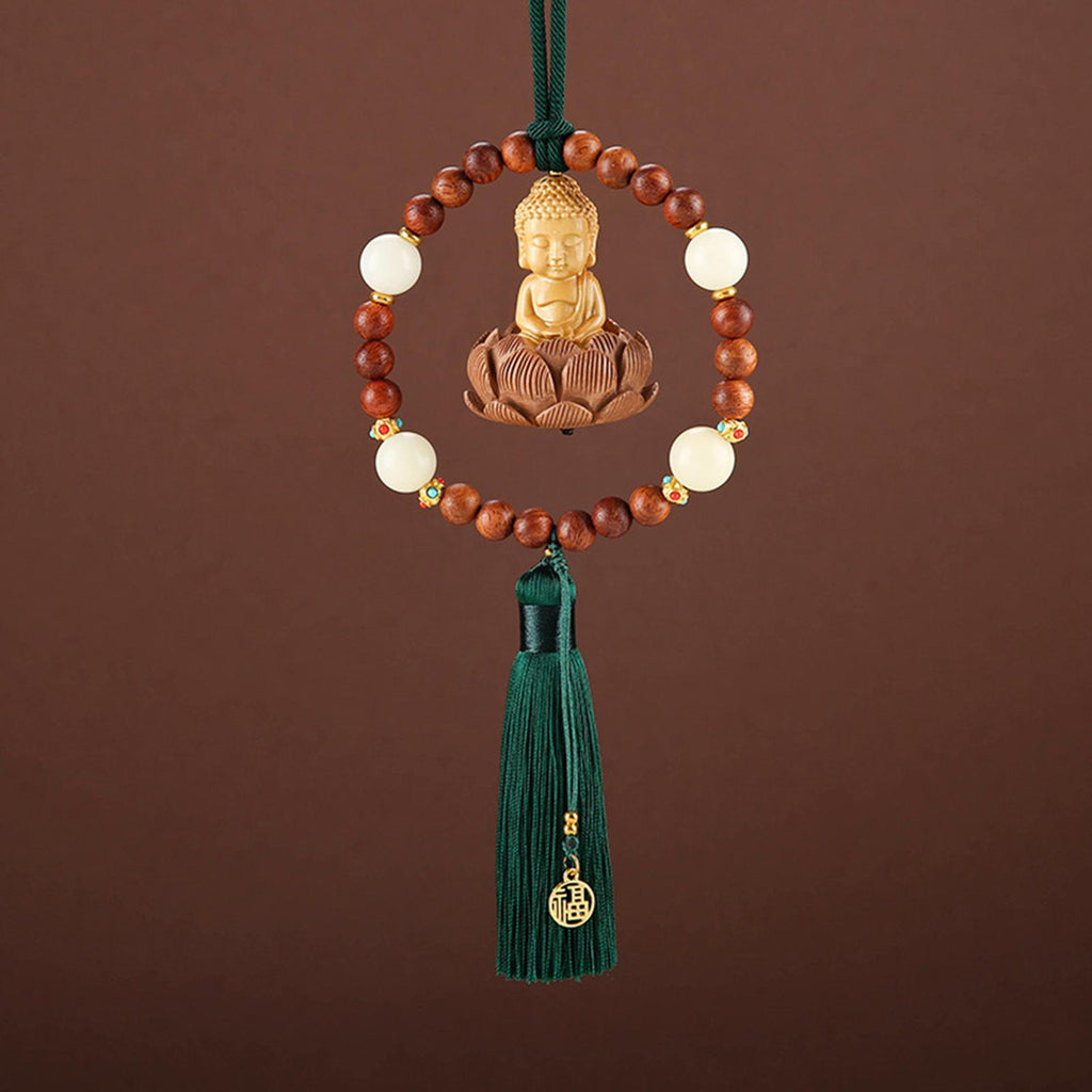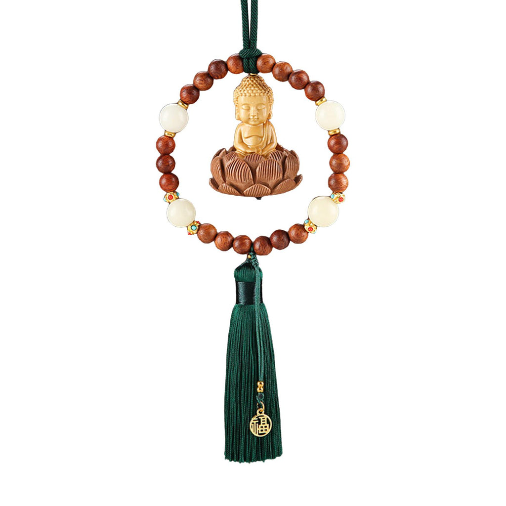 【Auto Interior Dangle】: Delicate Buddha statue car rearview mirror pendant, decorated with lotus base, beads, lucky sign, and tassel, fashion and beautiful.