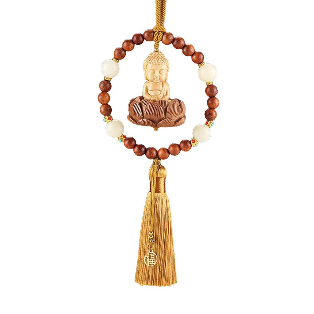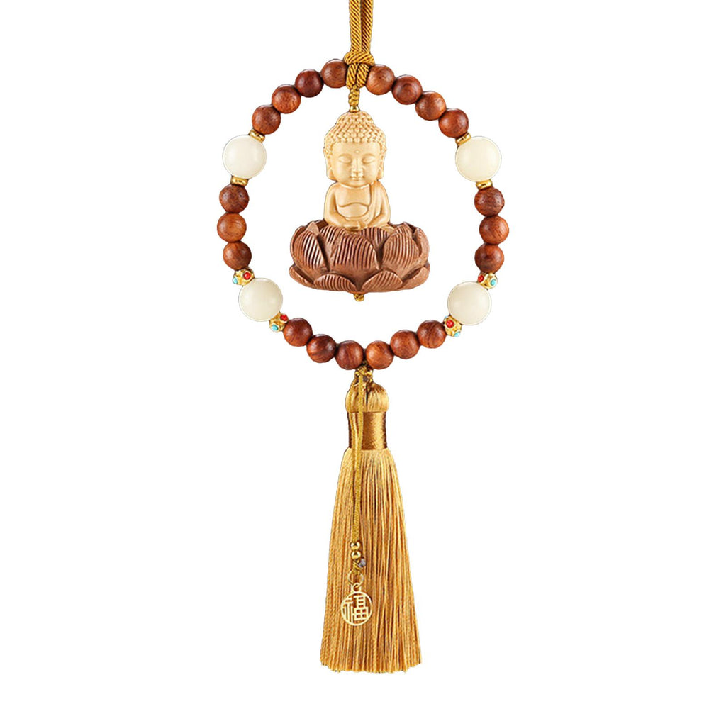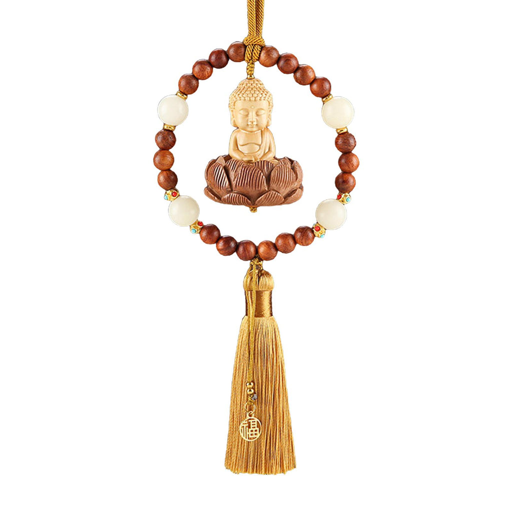 【Auto Interior Dangle】: Delicate Buddha statue car rearview mirror pendant, decorated with lotus base, beads, lucky sign, and tassel, fashion and beautiful.
