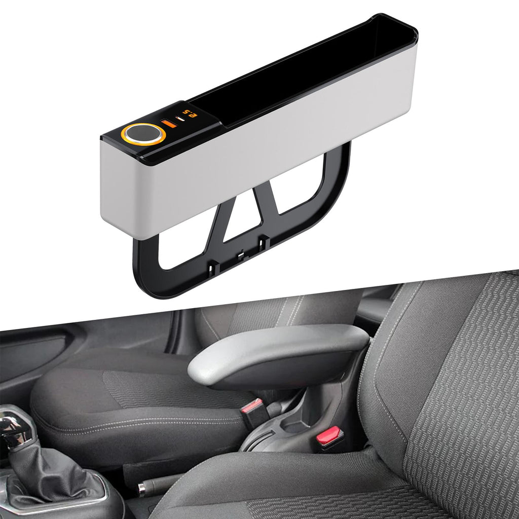 【Dual USB Ports】: The seat crevice storage box has USB + Type C fast charging ports and a voltage display, suitable for charging your phone, tablet, laptop and other devices, convenient and practical.