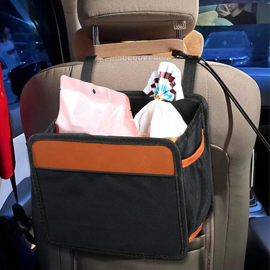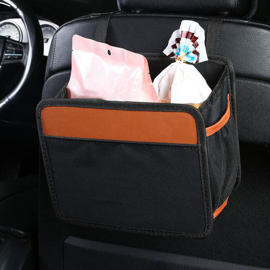 【Easy to Use】:Multifunctional car garbage can, with adjustable hanging straps, it can be easily hung on front or back headrests, saving space and being convenient to use.