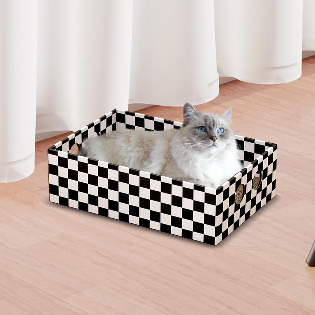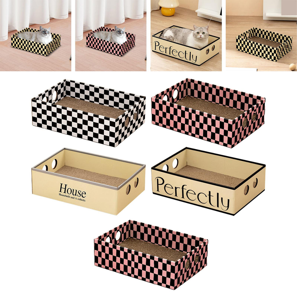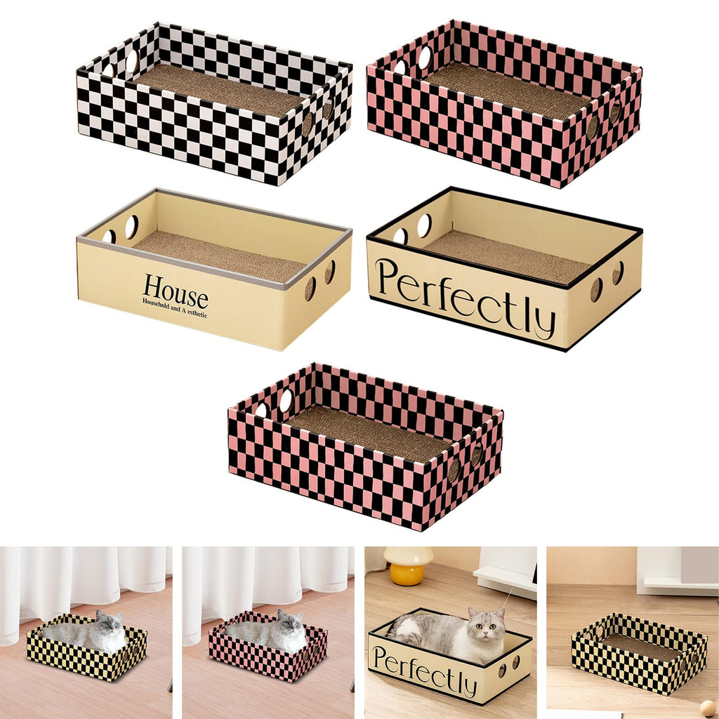 【Lounge Bed】:This creative rectangular cat scratcher board serves as both a cat house and a scratching board.