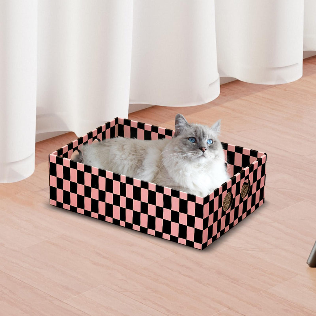 【Lounge Bed】:This creative rectangular cat scratcher board serves as both a cat house and a scratching board.