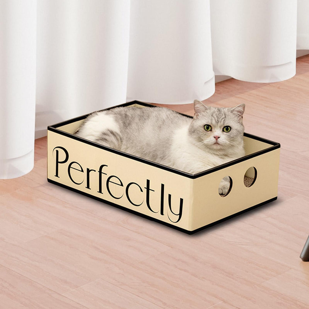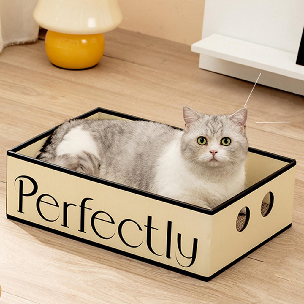 【Lounge Bed】:This creative rectangular cat scratcher board serves as both a cat house and a scratching board.