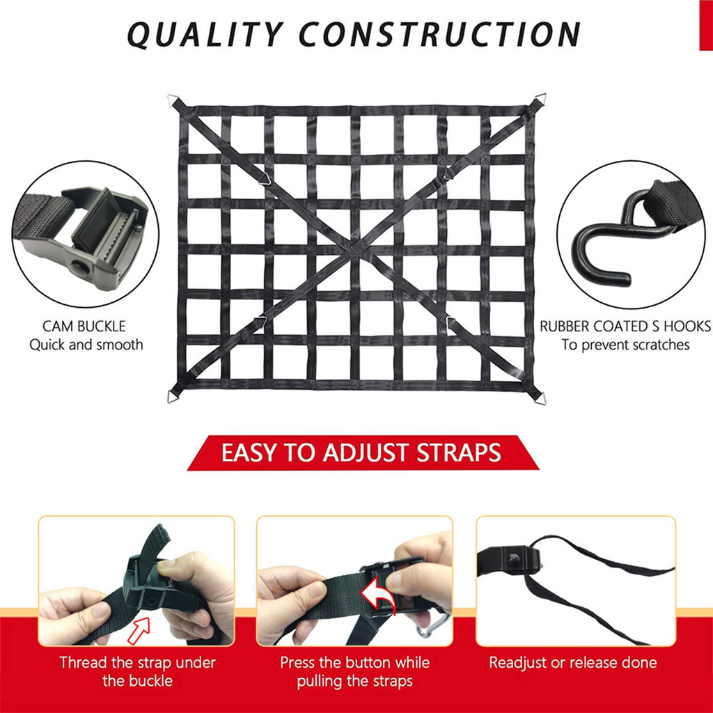 【Cargo Net】: This cargo net is designed to enhance the functionality and safe of your vehicle.