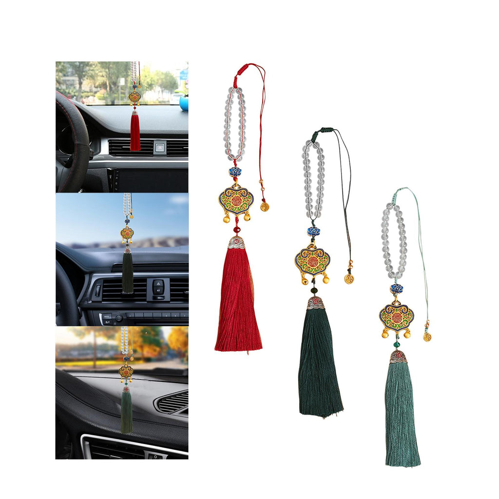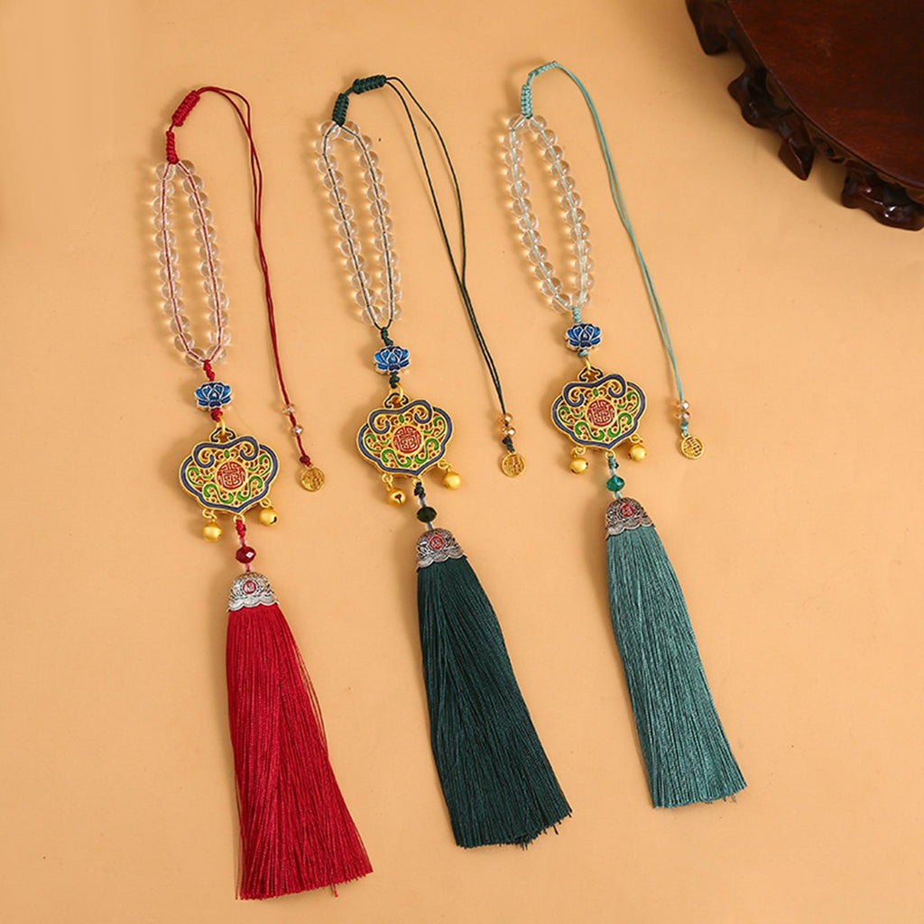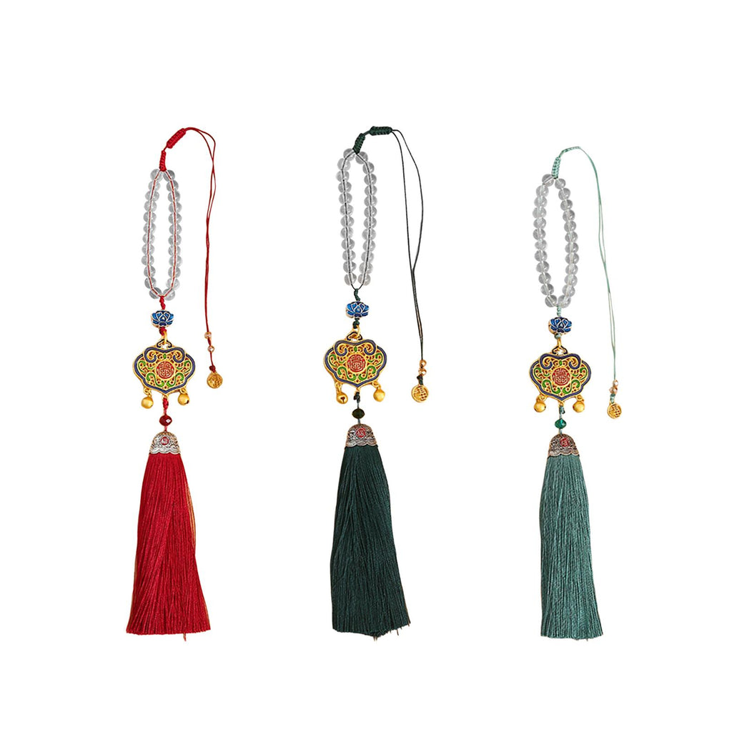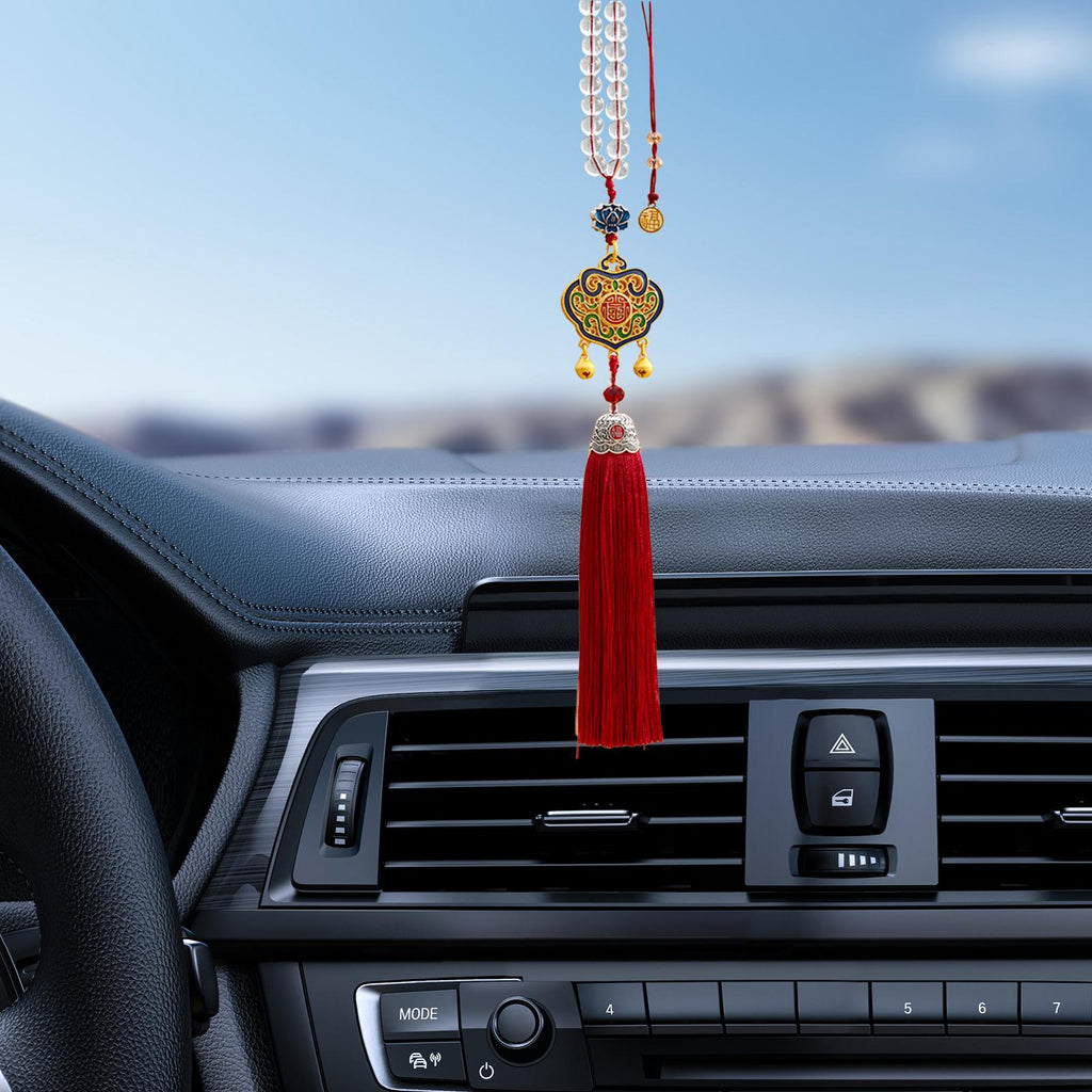 【Auto Interior Dangle】: Delicate car rearview mirror pendant, decorated with clear beads, lucky lock, and tassel, enamel excellent and beautiful.