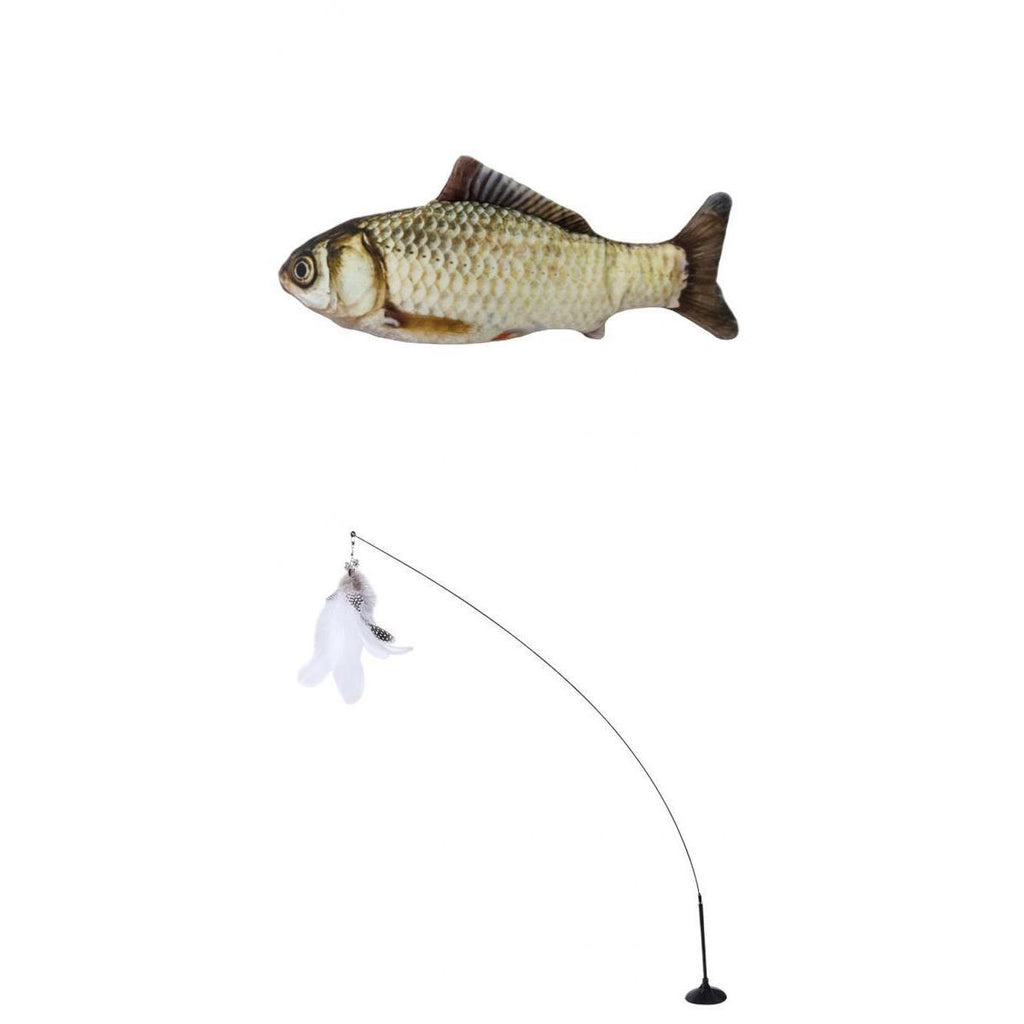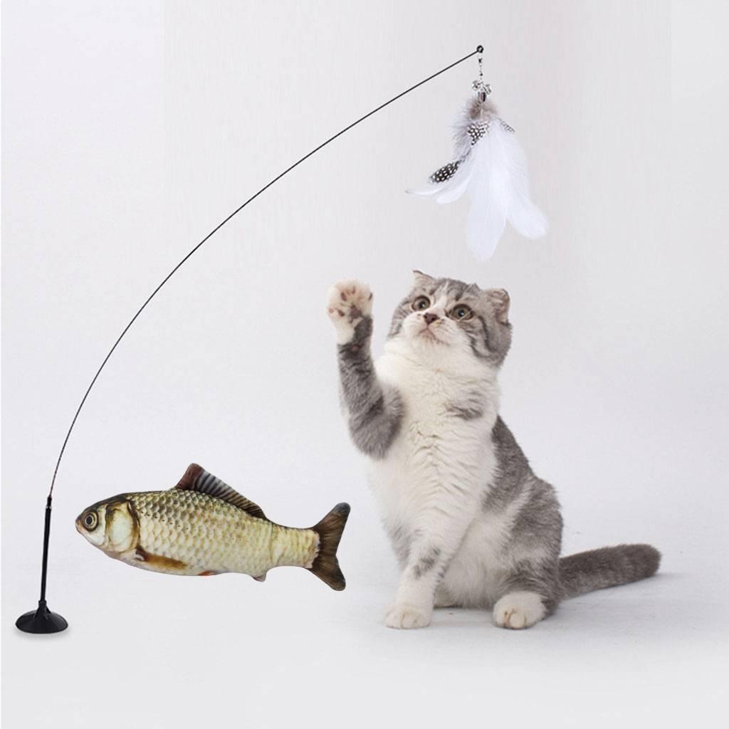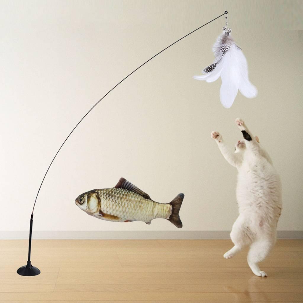 Maxbell Cat Feather Teaser Wand Stick & Fish Toy with Bell Interactive Play Toy