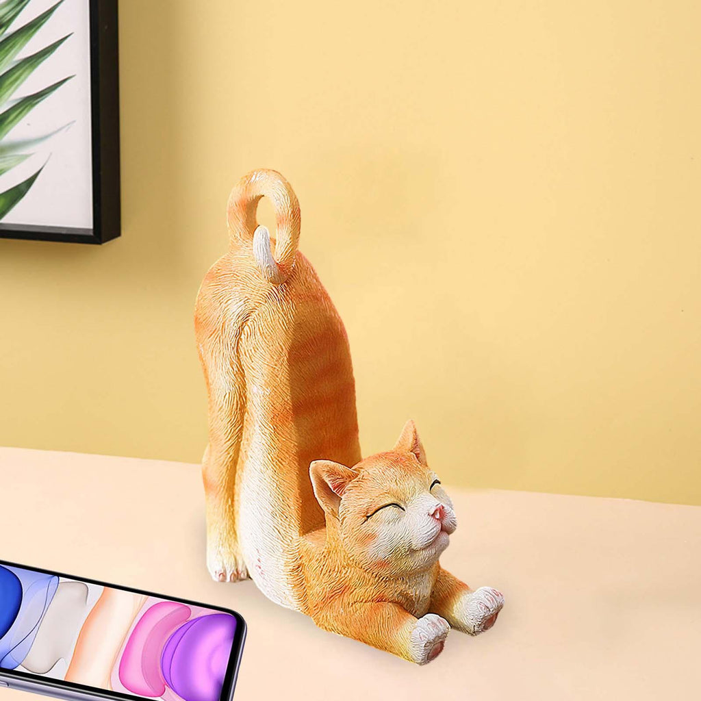 Maxbell Cat Figurine Phone Holder Anti Slip Animal Sculpture for Shelf Tabletop Gift Orange