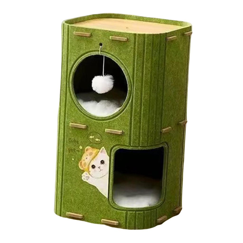 Maxbell Cat House Indoor 2 Layered Kitten Furniture Protection with Hanging Ball Toy Green