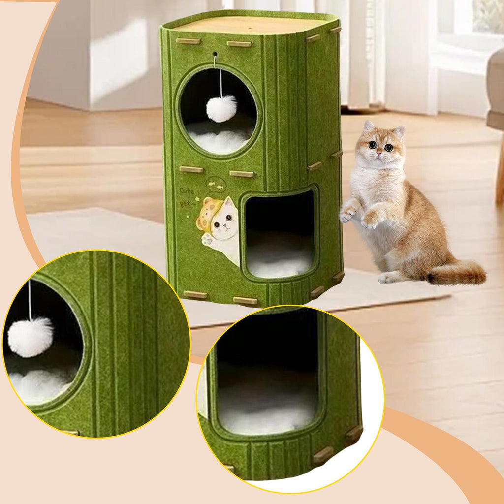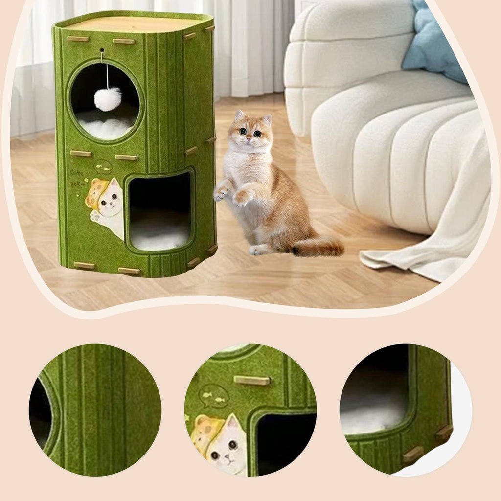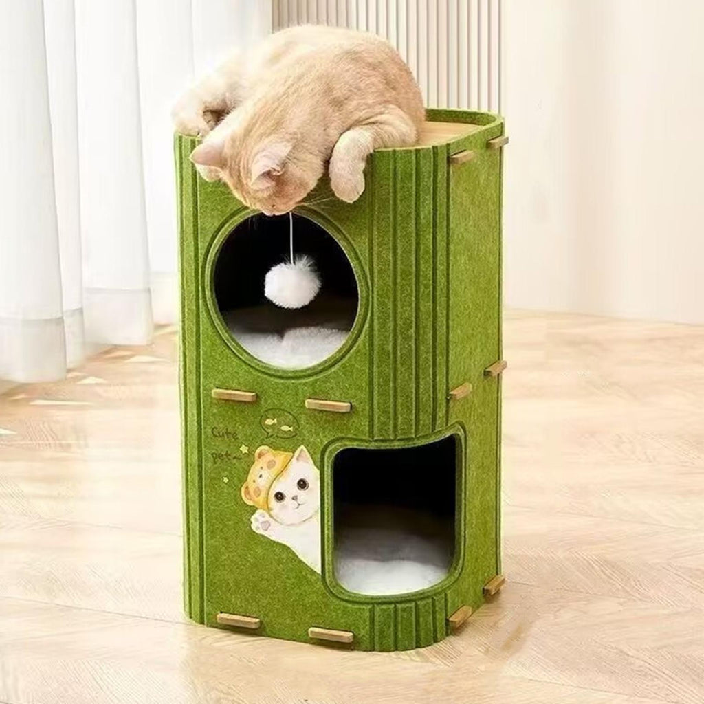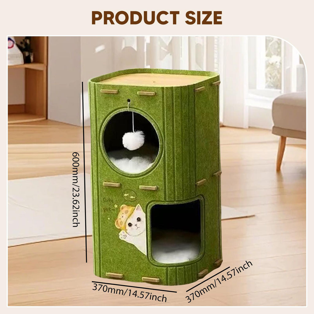 - 【MULTIFUNCTIONAL FELINE HAVEN】: This double levels cat cave combines a cozy hideaway for napping, a perch for observing, and a sturdy felt surface that satisfies their scratching instincts, all in a stylish unit