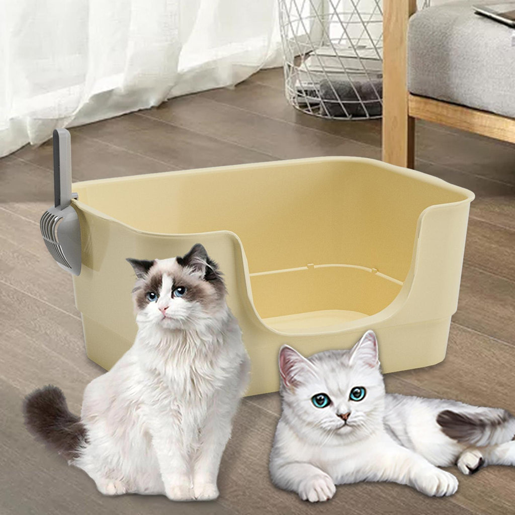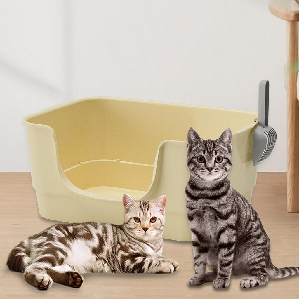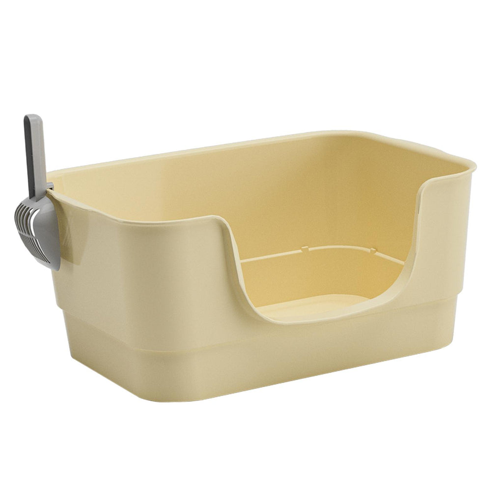 Maxbell Cat Litter Box Sturdy Cat Litter Basin Pet Supplies Open Top Pet Litter Tray Apricot
