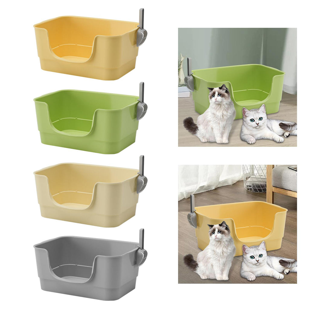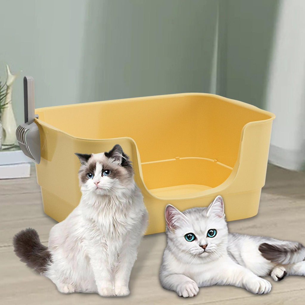 Maxbell Cat Litter Box Sturdy Cat Litter Basin Pet Supplies Open Top Pet Litter Tray Yellow