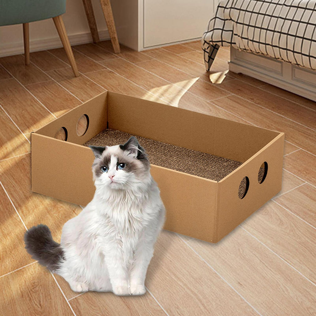 【Lounge Bed】:This creative rectangular cat scratcher box serves as both a cat house and a scratching board, attracts your cat to play, satisfies the cat scratching instinct, and increases cat exercise and fun.