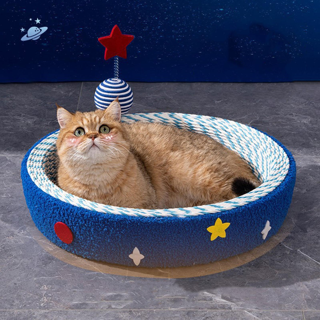 【Quality materials】: Crafted from quality paper rope and velvet, this cat scratcher bed is designed to be sturdy and withstand repeated use over time