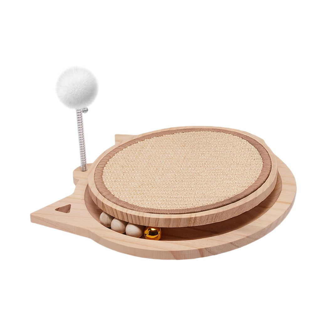 【Unique Design】: This Cat Scratcher Board combines a sisal scratching board, a spring plush ball, and a track with moving balls. The round design of the scratching board also provides a cozy resting place for your cat after playtimes