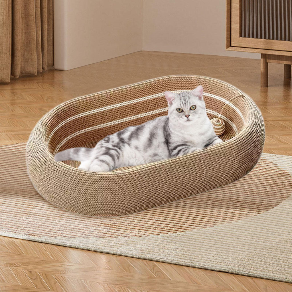 【Material】: The oval cats scratch pad made of sisal and high density board to withstand the most enthusiastic scratching and clawing