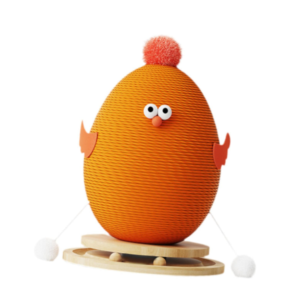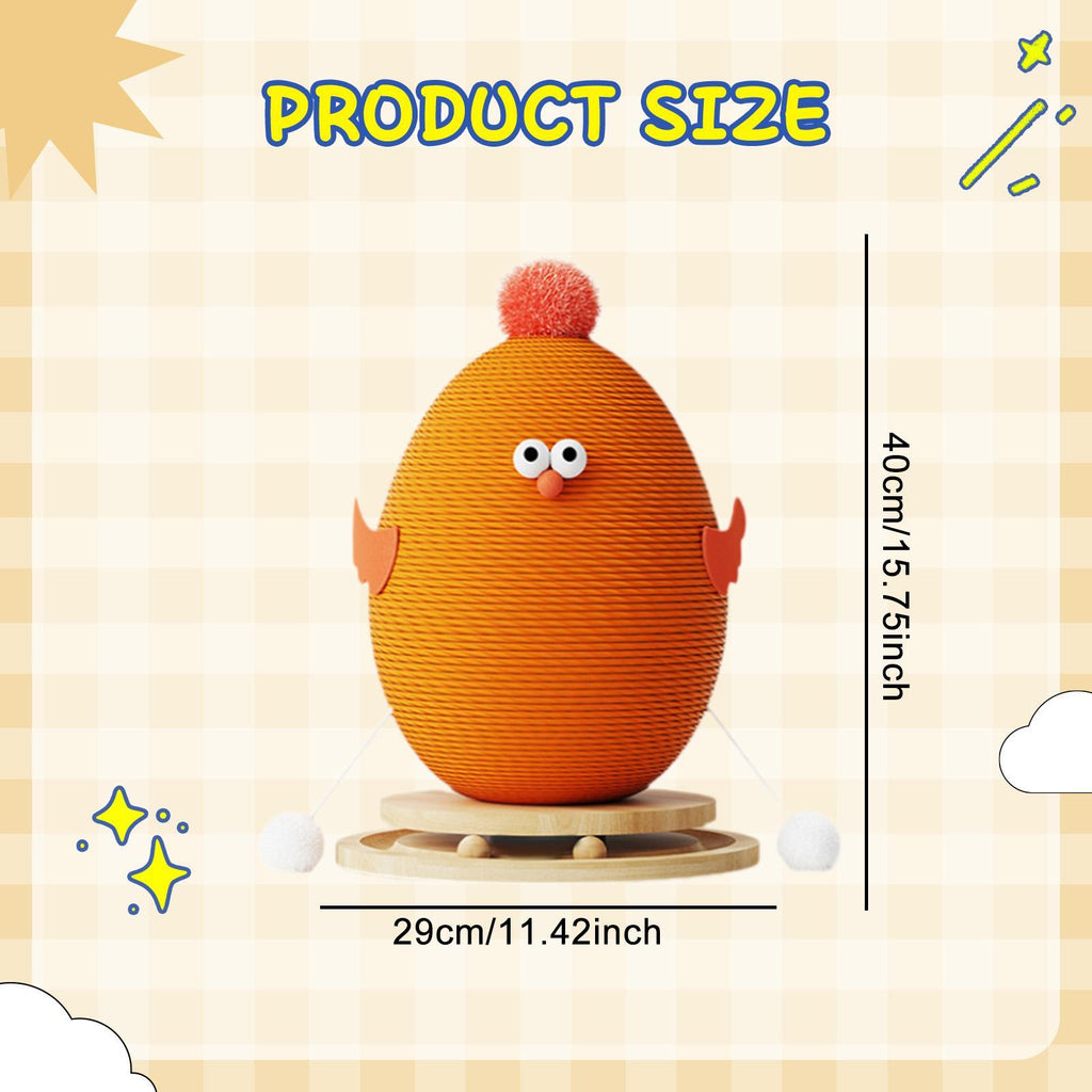 【Design】: The Cat Scratching Post features a cartoon chick design, adorned with plush ball accessories