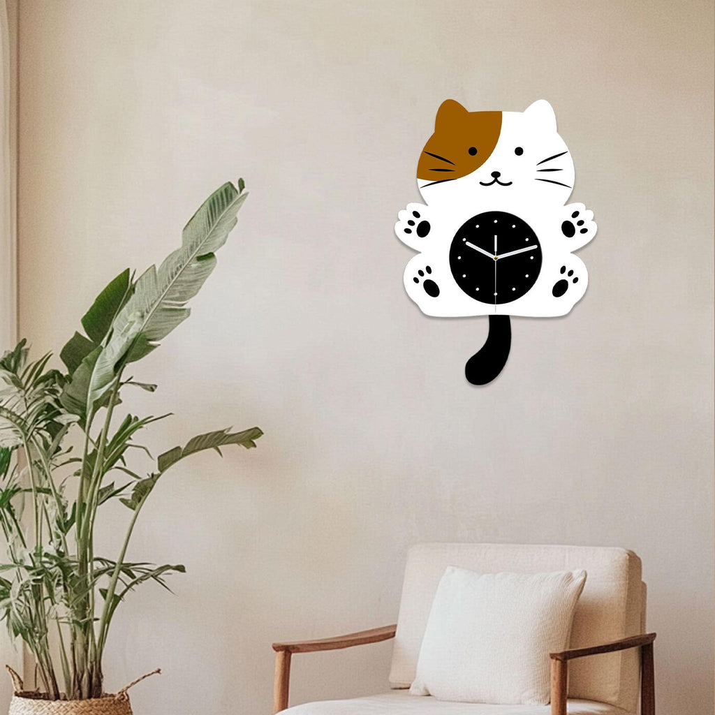 【Charming Design】: Cat Shaped Wall Clock features a cute cartoon cat with its tail swinging from side to side, adding a touch of whimsy and modern art to your home decor