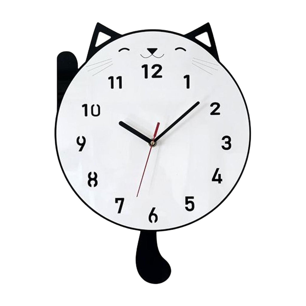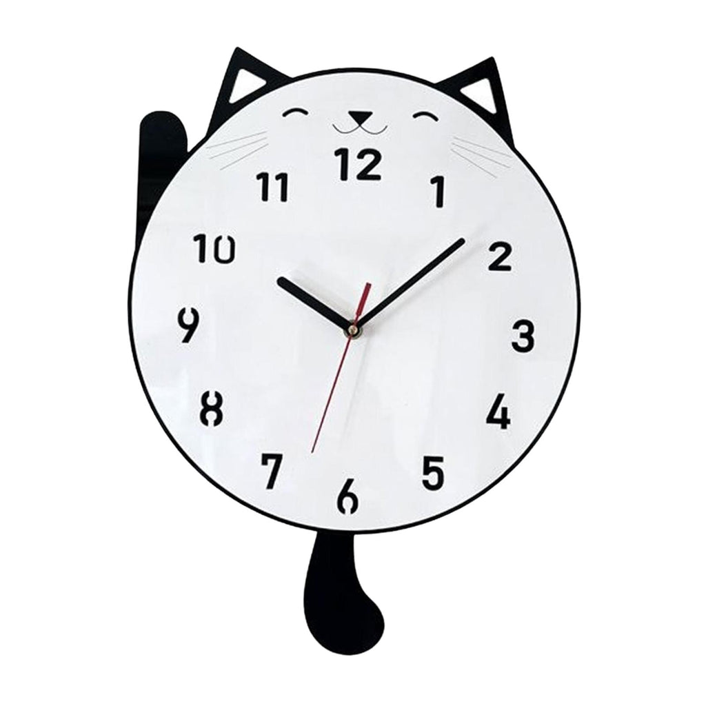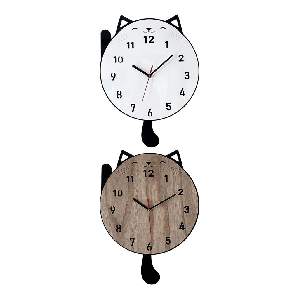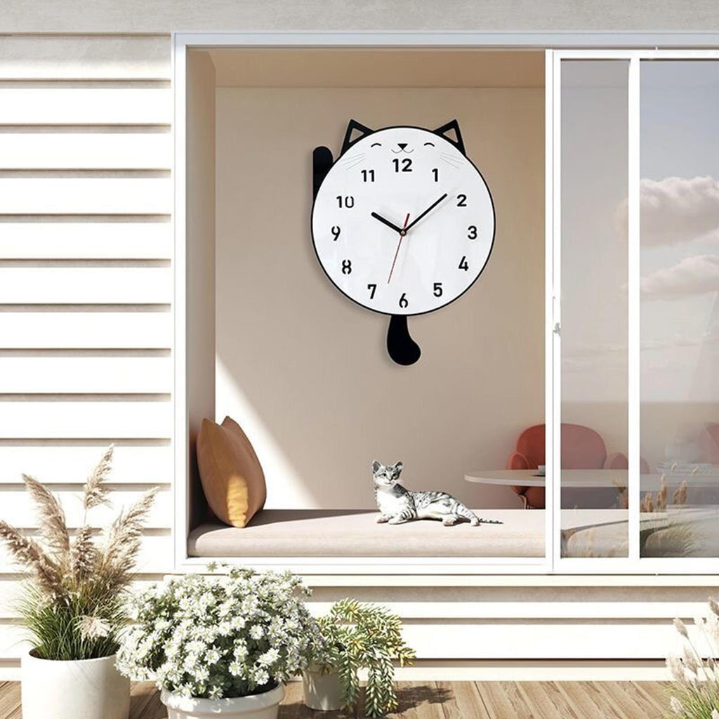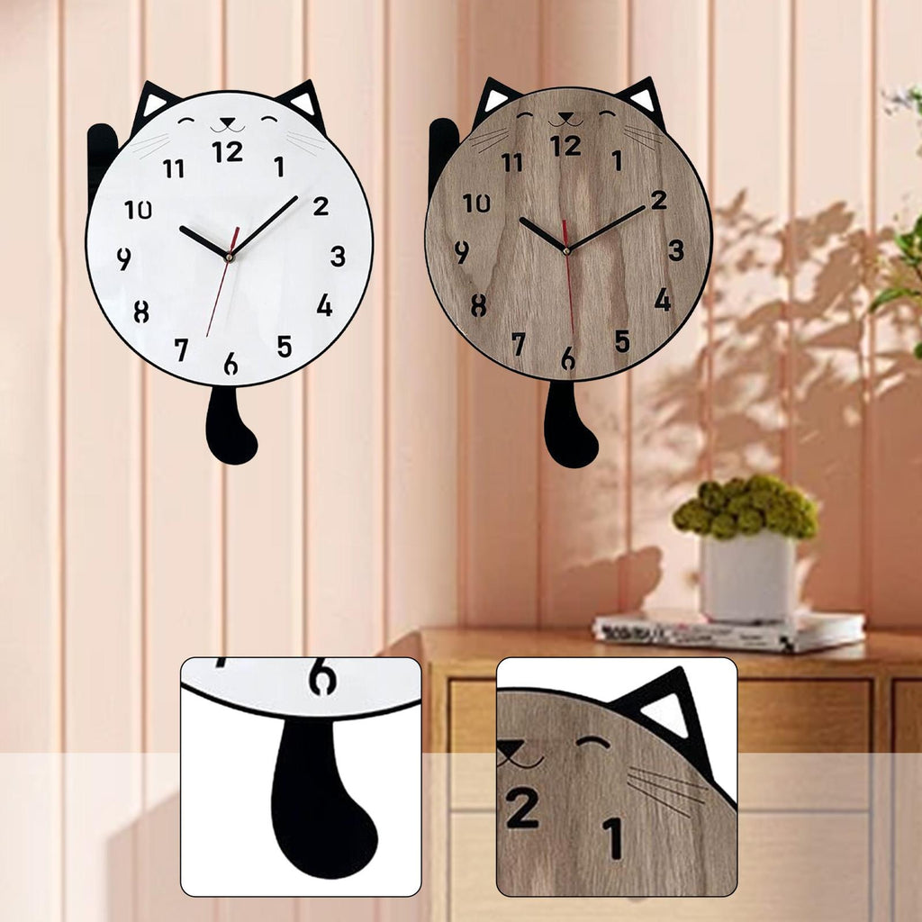 - 【Creative Design】: Cute cartoon cat pendulum wall hanging clock with a swinging tail from left to right, interesting modern art decoration, adding a touch of warmth and stylish