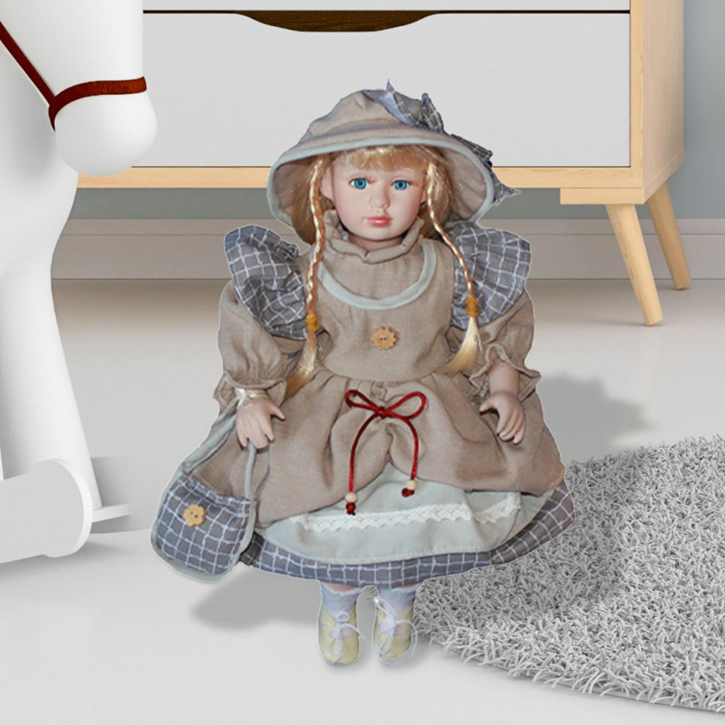 Maxbell Ceramic Doll in Dress Elegant Miniature Ceramic Figure for Girls Kids Friend gray