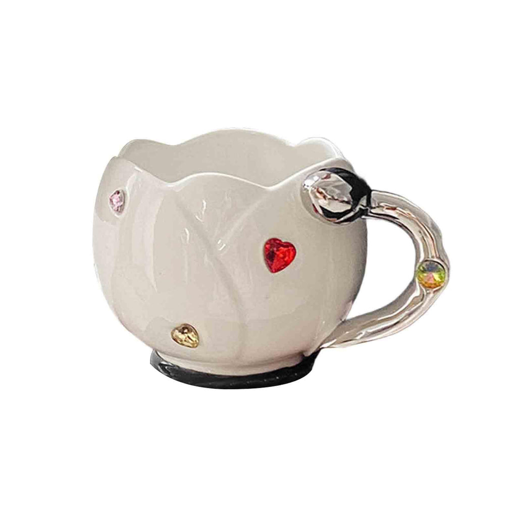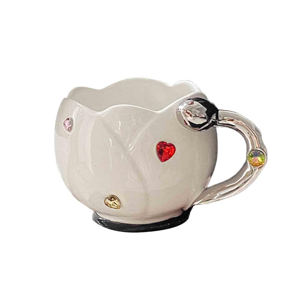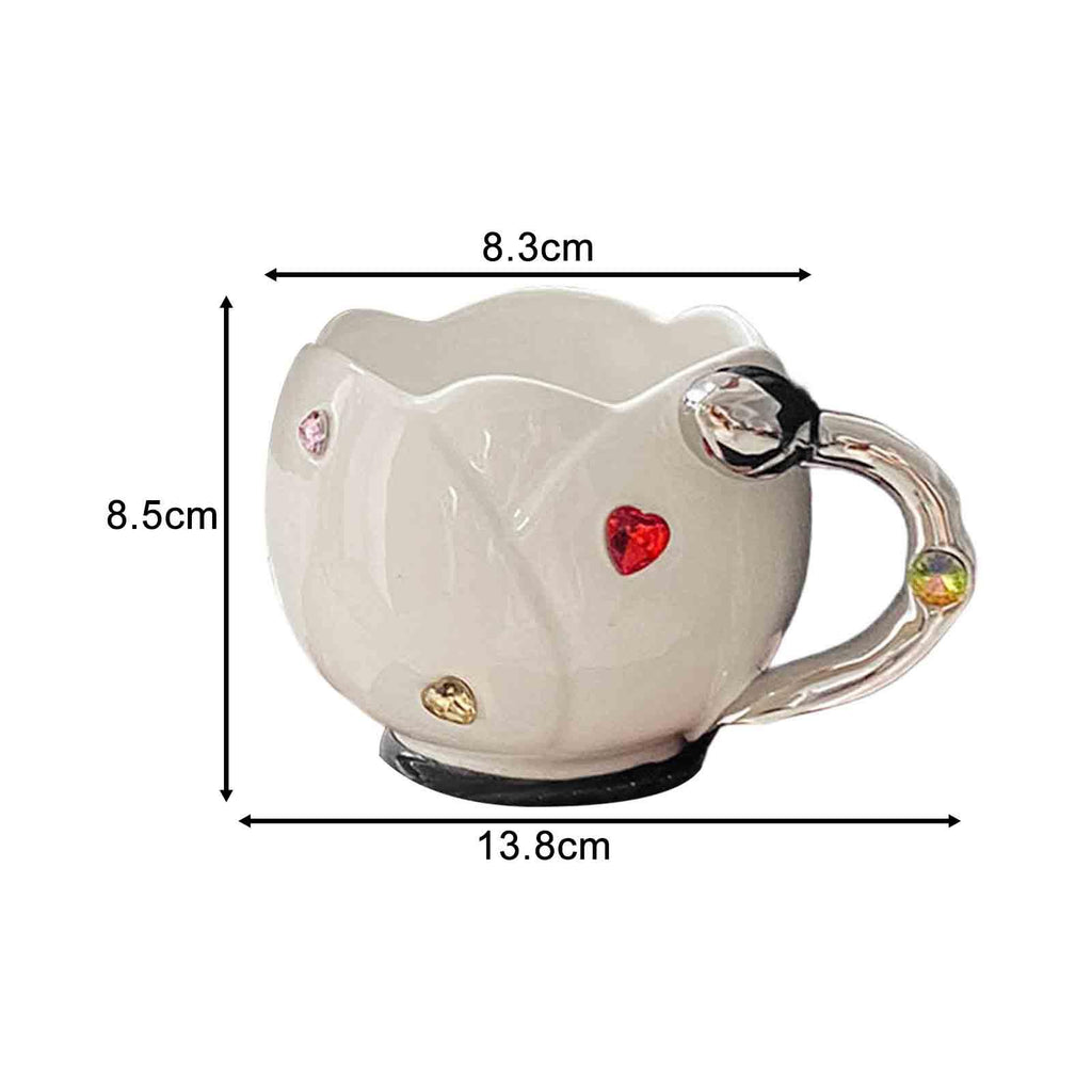 【 Design】: The flower shaped mug features a delicate body with smooth lines, embellished with imitation colored gemstones, adding an artistic touch to your home.