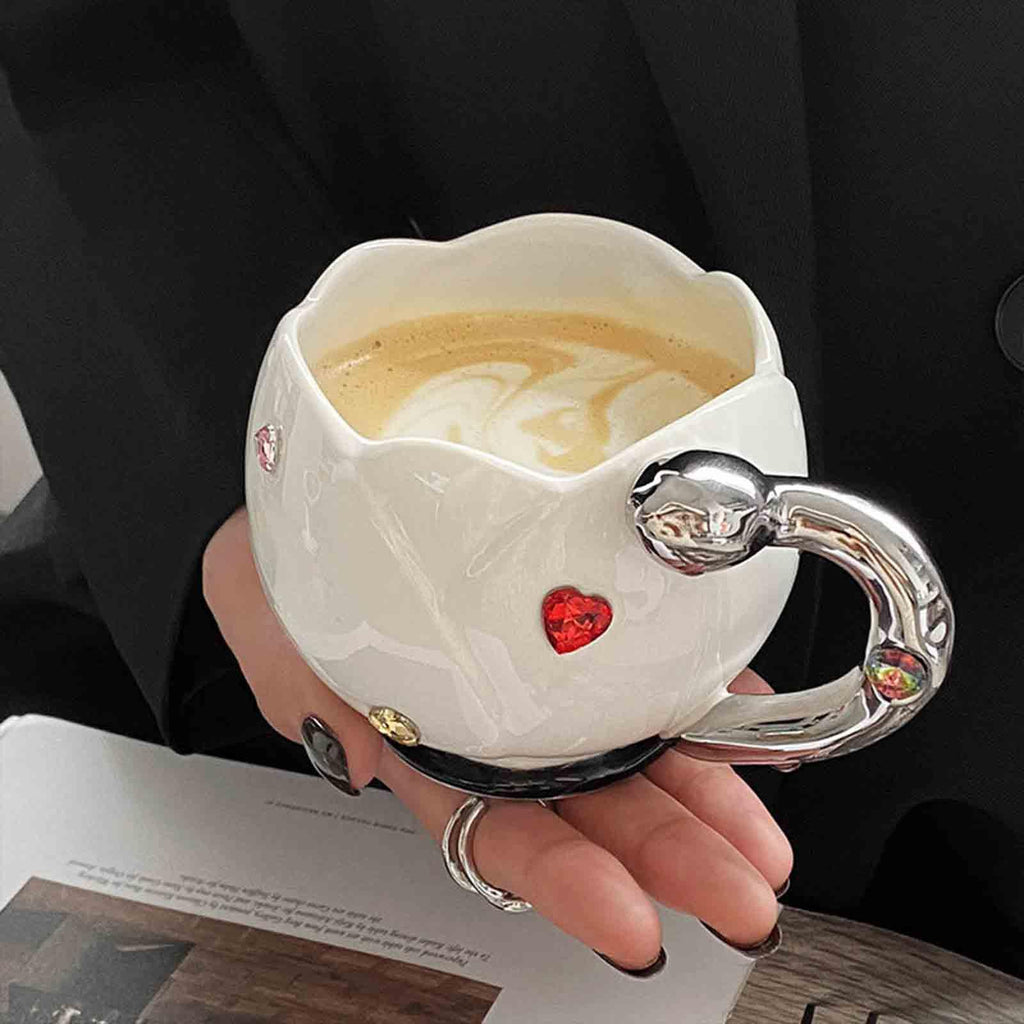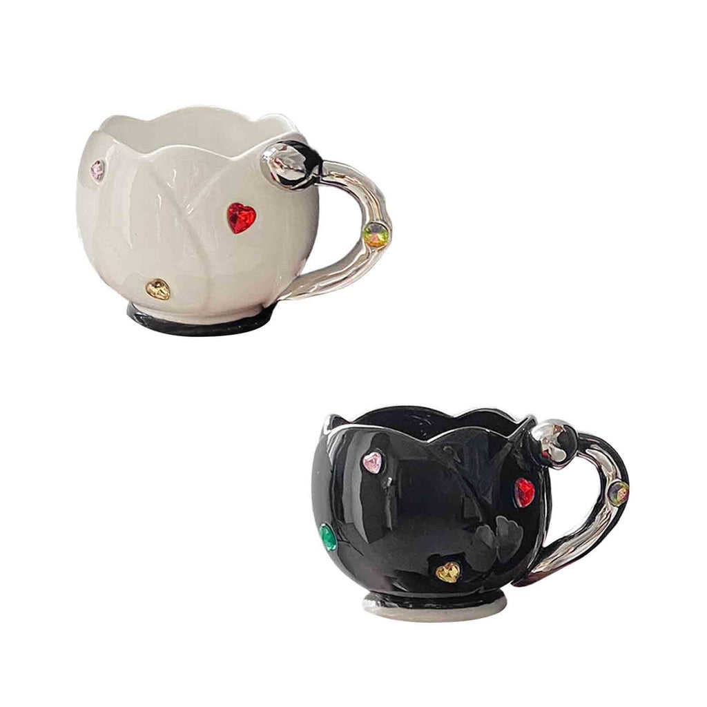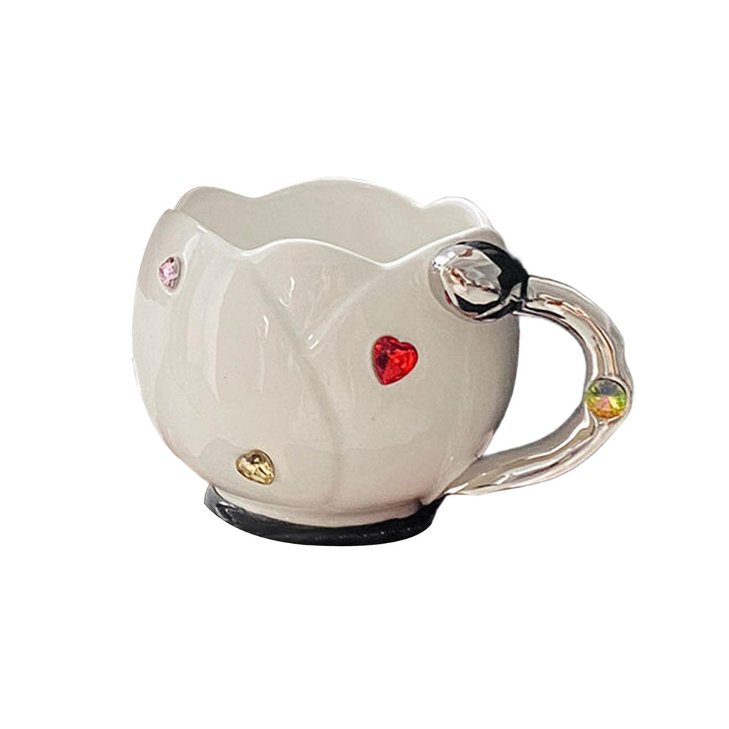 【 Design】: The flower shaped mug features a delicate body with smooth lines, embellished with imitation colored gemstones, adding an artistic touch to your home.
