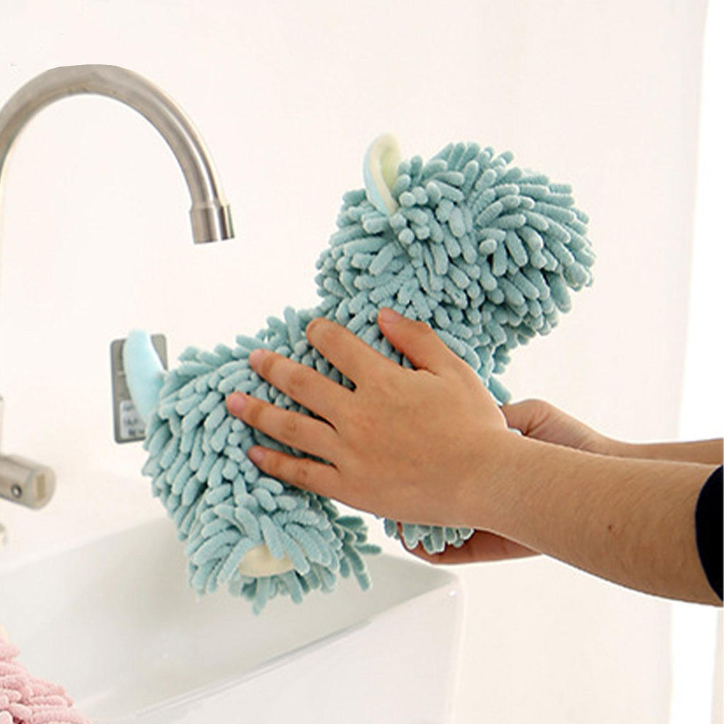Maxbell Chenille Hand Towel Kids Kitchen Accessory Home Use Quick Dry Soft Washcloth Blue