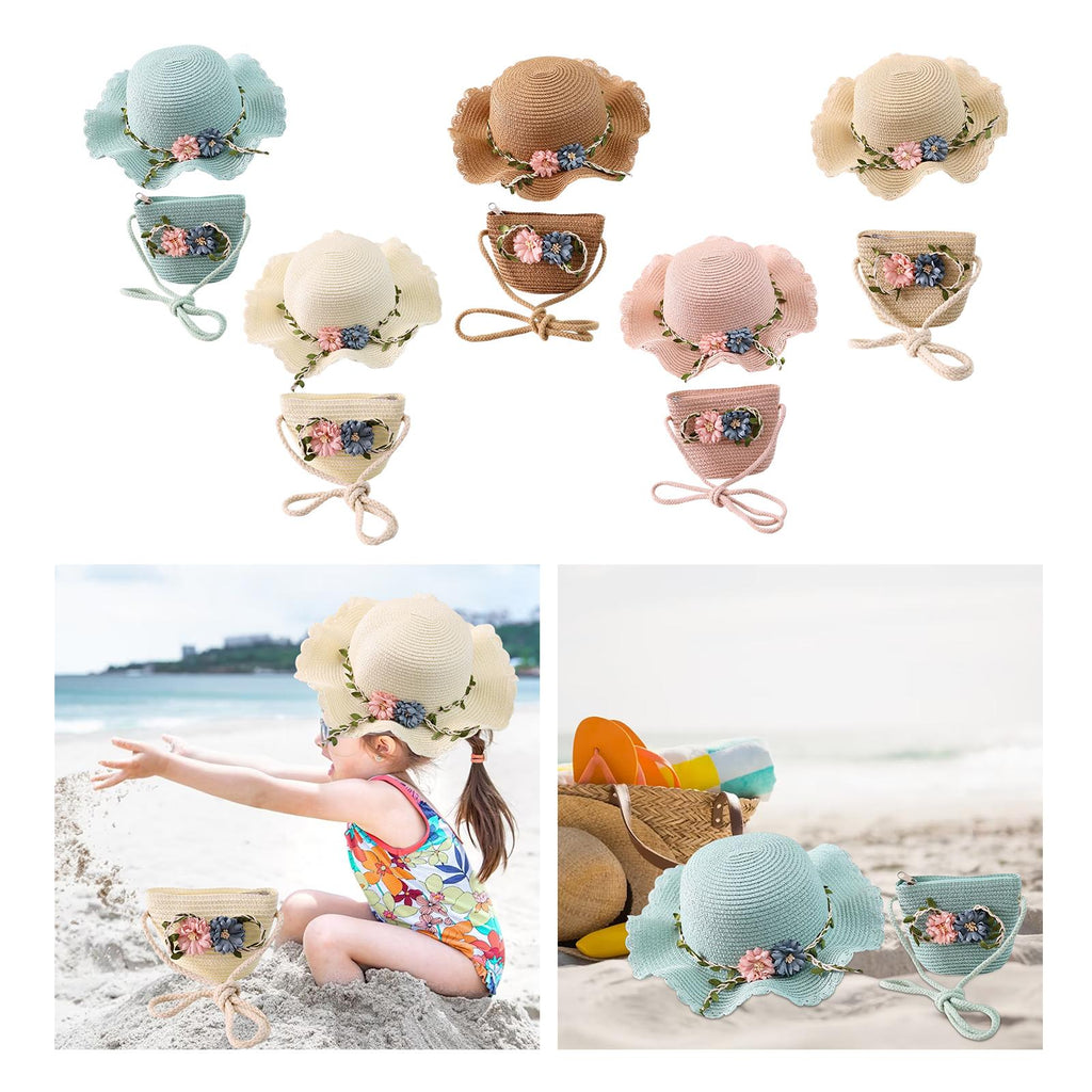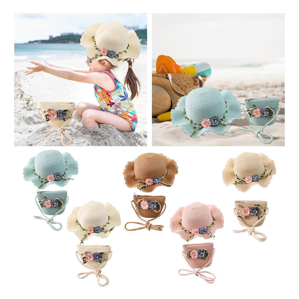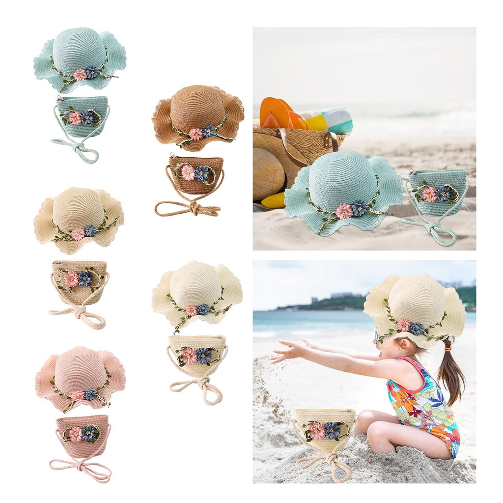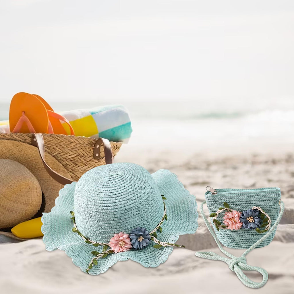 [Package ] 1 Girls Straw Hat and 1 Straw Tote. Perfect for a girl's tea party, garden party, spring outing, autumn outing or daily wear.