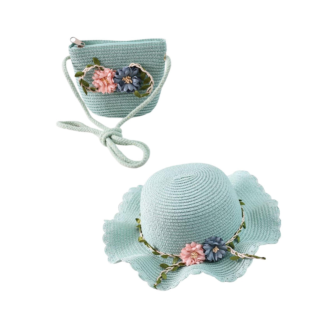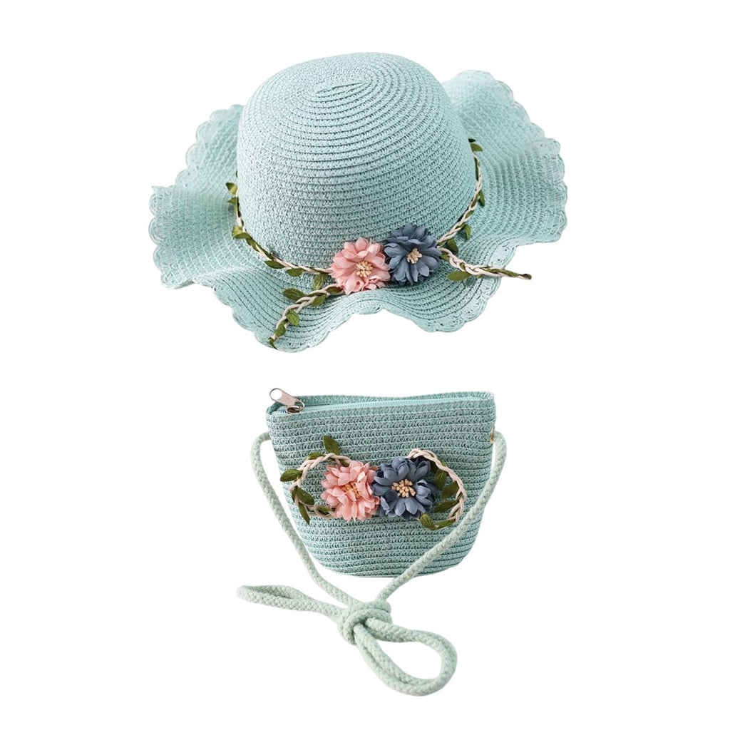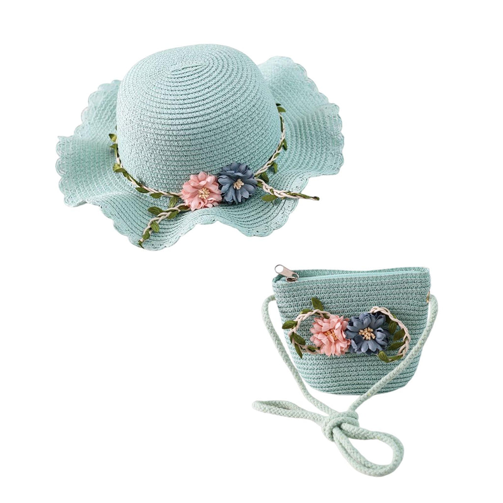 Maxbell Children's Sun Hat with Tote Kids Girl Beach Cap for Beach Easter Activities green