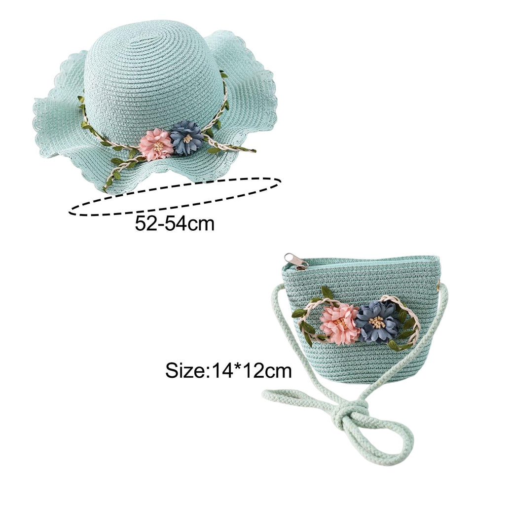 [Sun Hat] The girls' straw sun hat measures 52cm-54cm/20.47inch-21.26inch, with an elastic band to hold the hat in place, making your child feel relaxed at all times throughout the holiday.