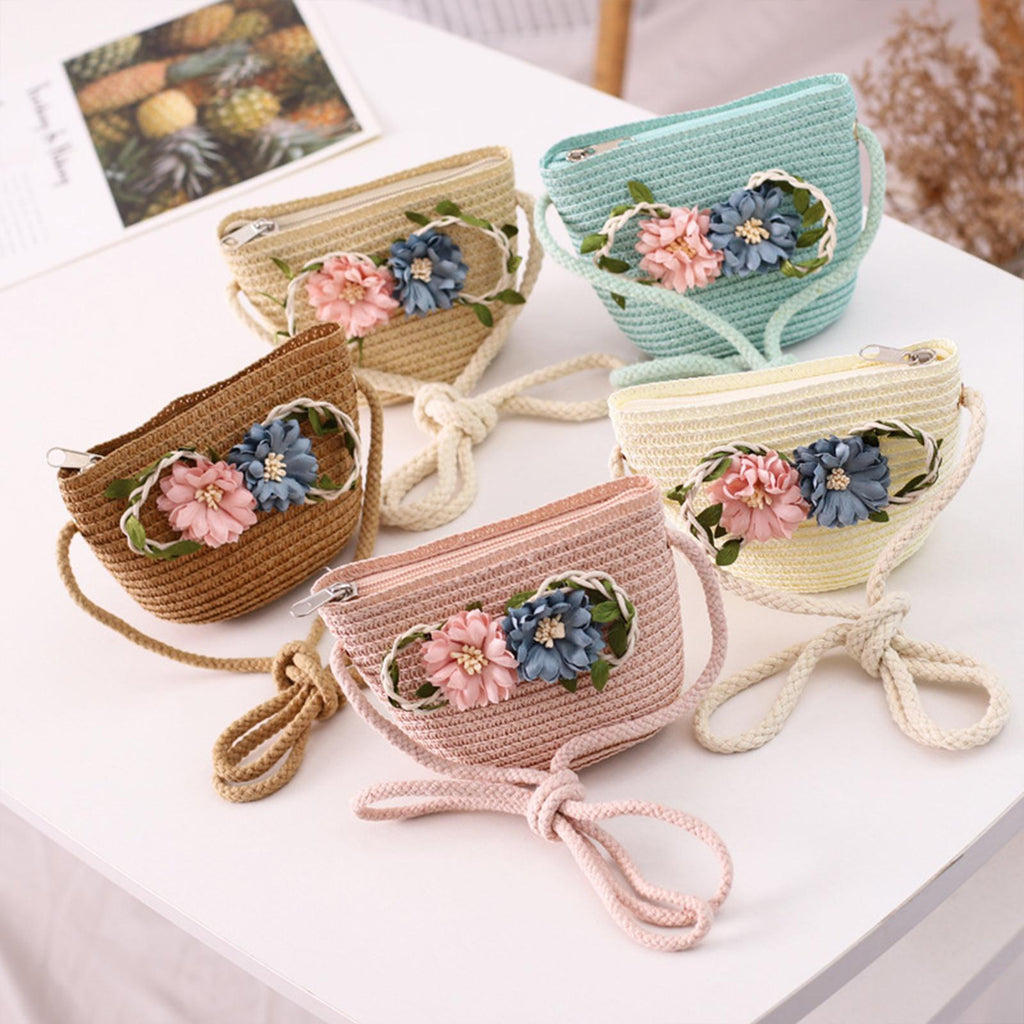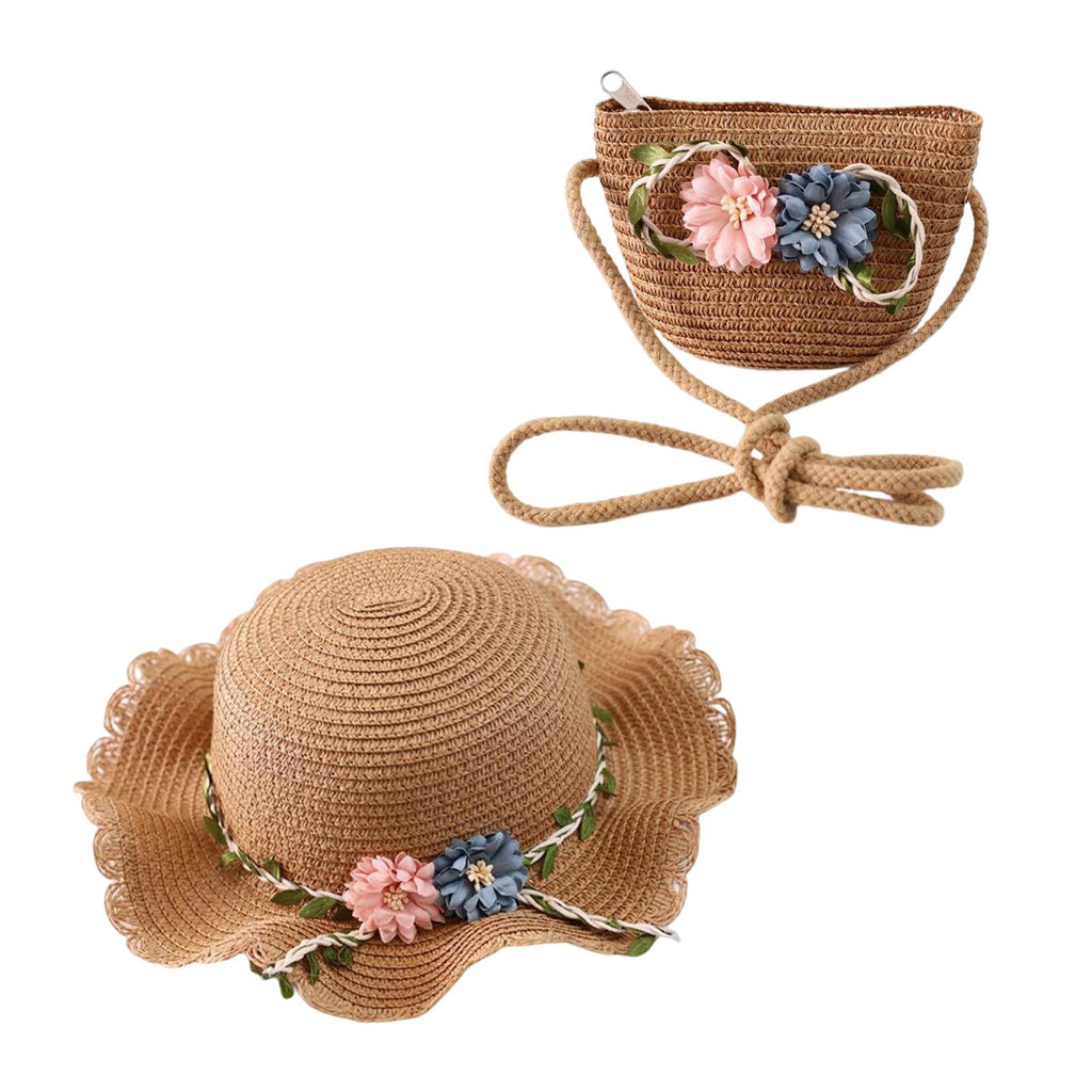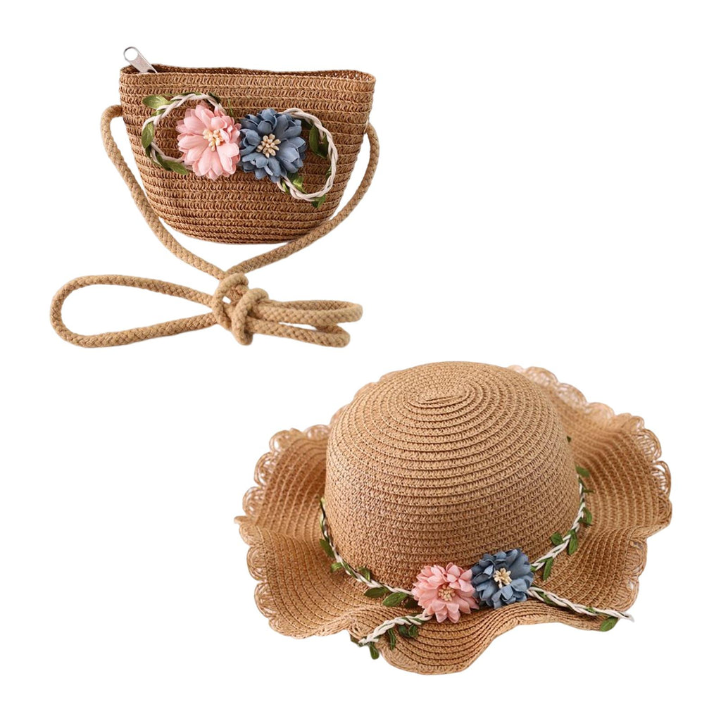 [Package ] 1 Girls Straw Hat and 1 Straw Tote. Perfect for a girl's tea party, garden party, spring outing, autumn outing or daily wear.