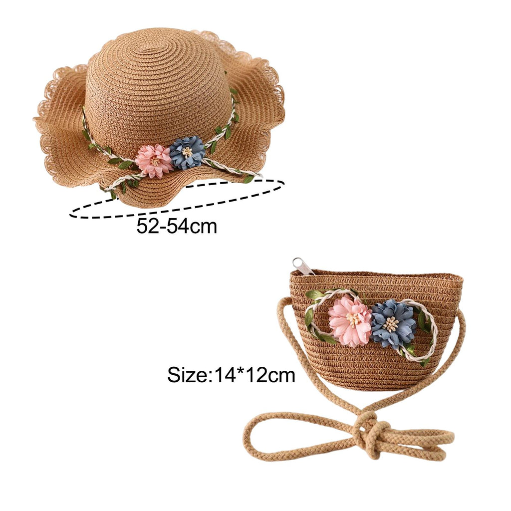 [Sun Hat] The girls' straw sun hat measures 52cm-54cm/20.47inch-21.26inch, with an elastic band to hold the hat in place, making your child feel relaxed at all times throughout the holiday.