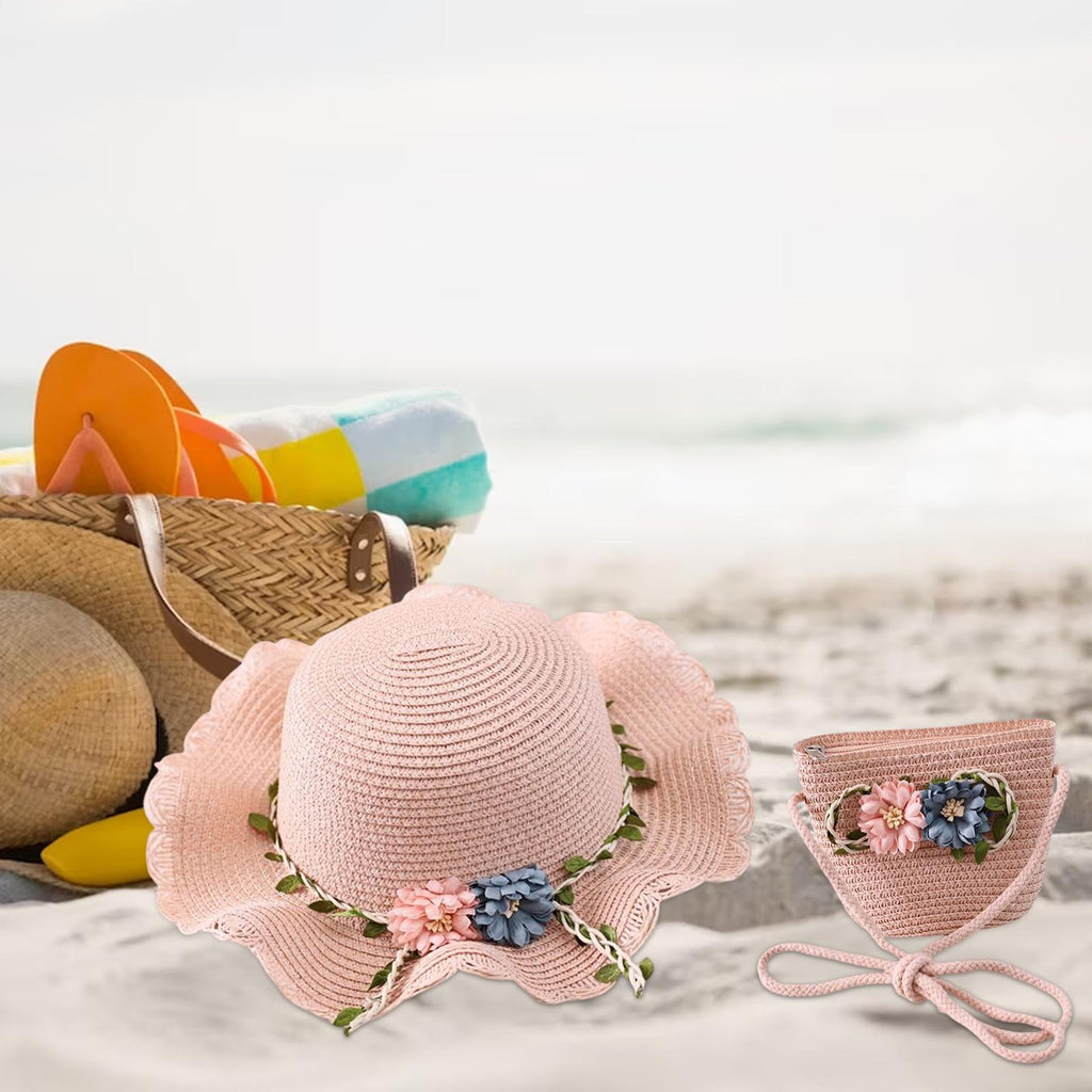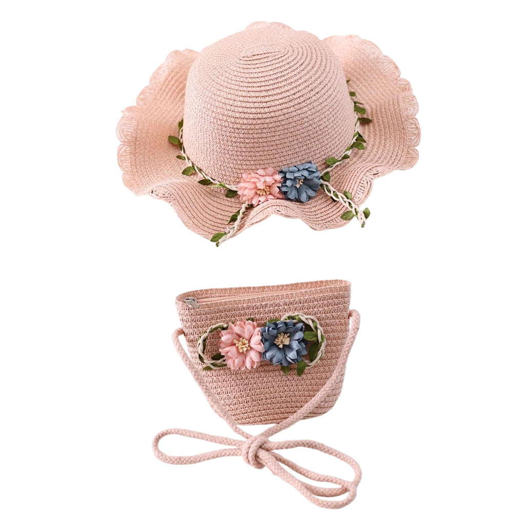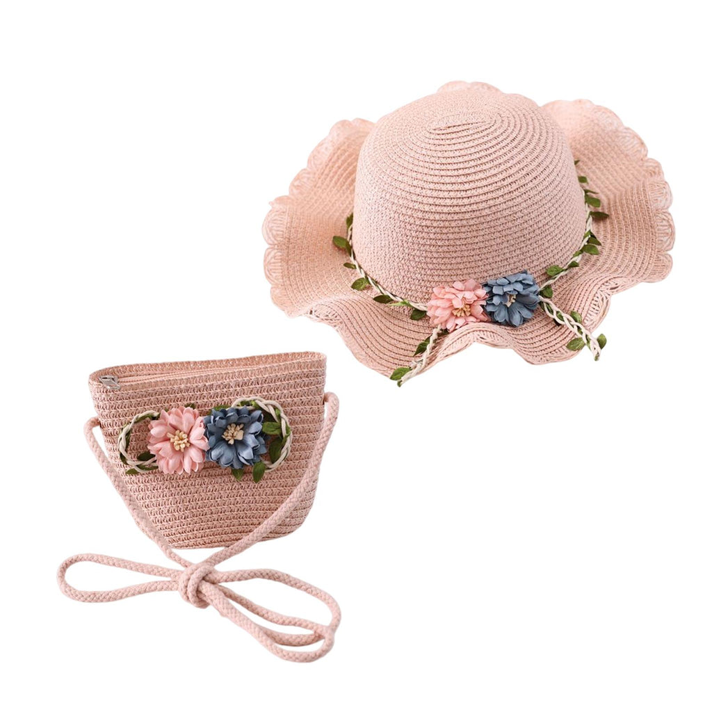 Maxbell Children's Sun Hat with Tote Kids Girl Beach Cap for Beach Easter Activities pink