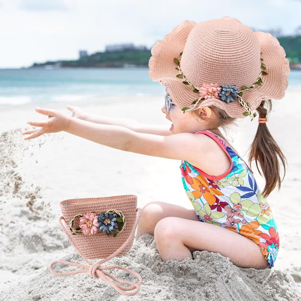 [Sun Hat] The girls' straw sun hat measures 52cm-54cm/20.47inch-21.26inch, with an elastic band to hold the hat in place, making your child feel relaxed at all times throughout the holiday.