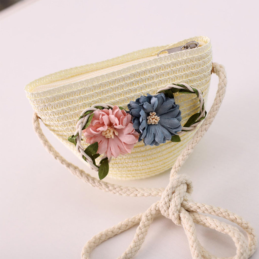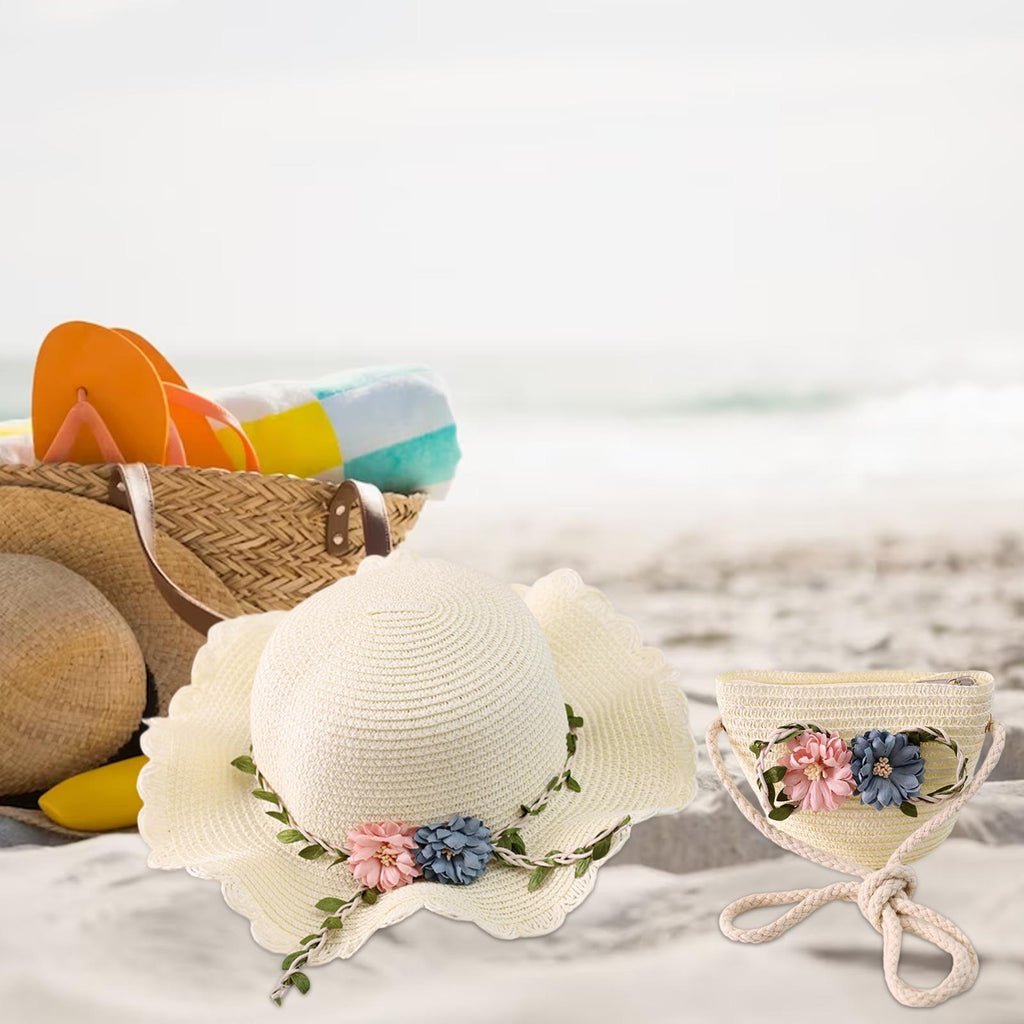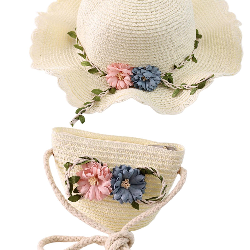 [Package ] 1 Girls Straw Hat and 1 Straw Tote. Perfect for a girl's tea party, garden party, spring outing, autumn outing or daily wear.