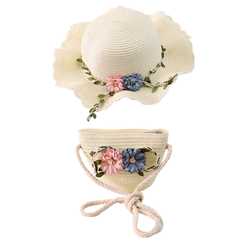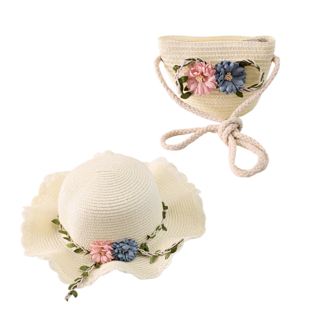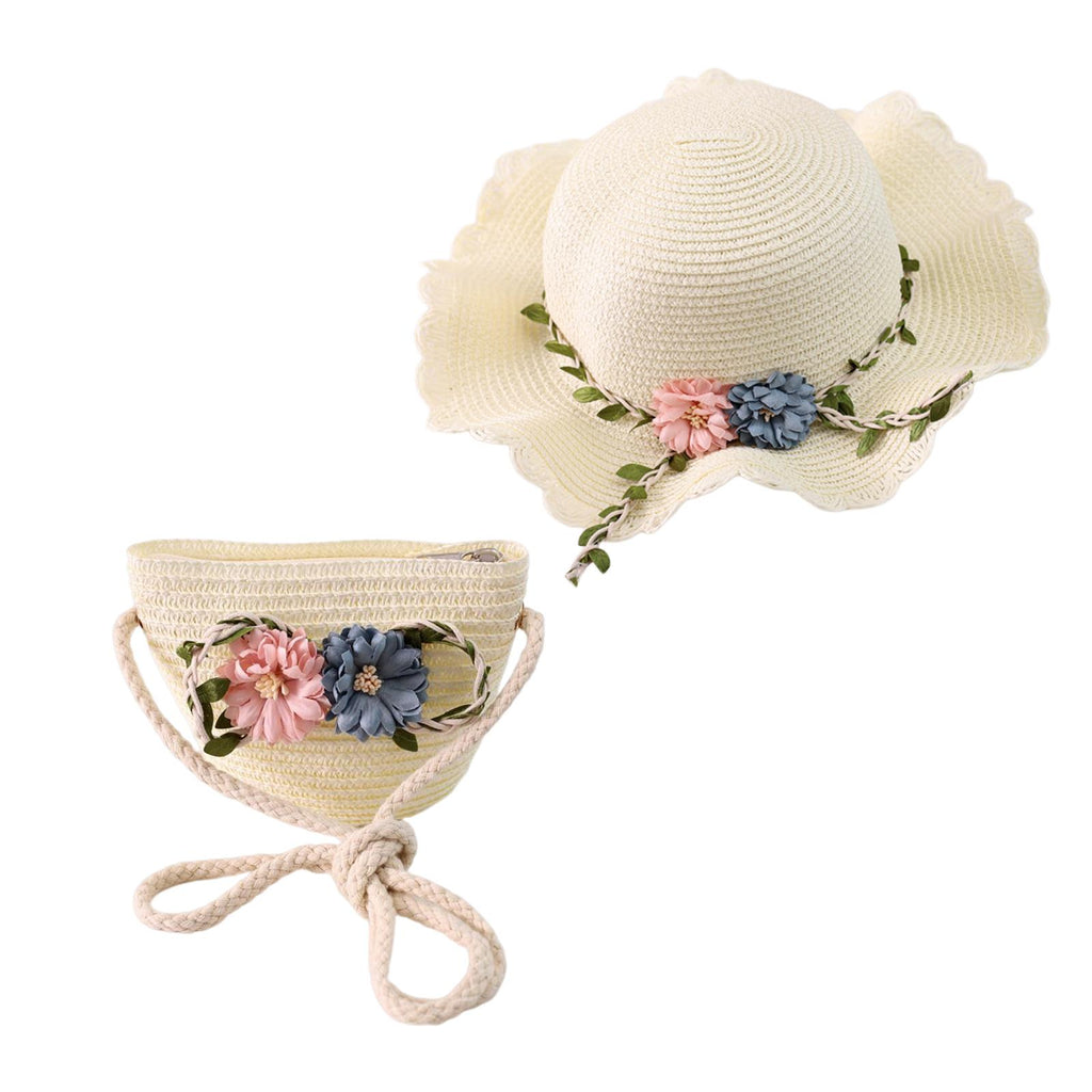 Maxbell Children's Sun Hat with Tote Kids Girl Beach Cap for Beach Easter Activities white
