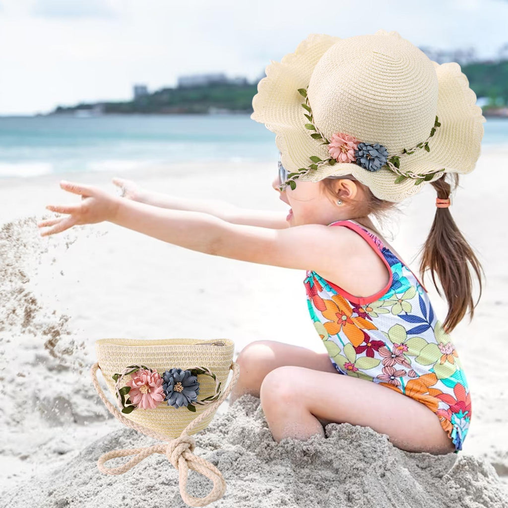 [Sun Hat] The girls' straw sun hat measures 52cm-54cm/20.47inch-21.26inch, with an elastic band to hold the hat in place, making your child feel relaxed at all times throughout the holiday.