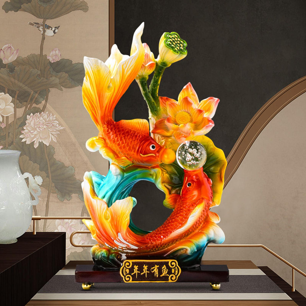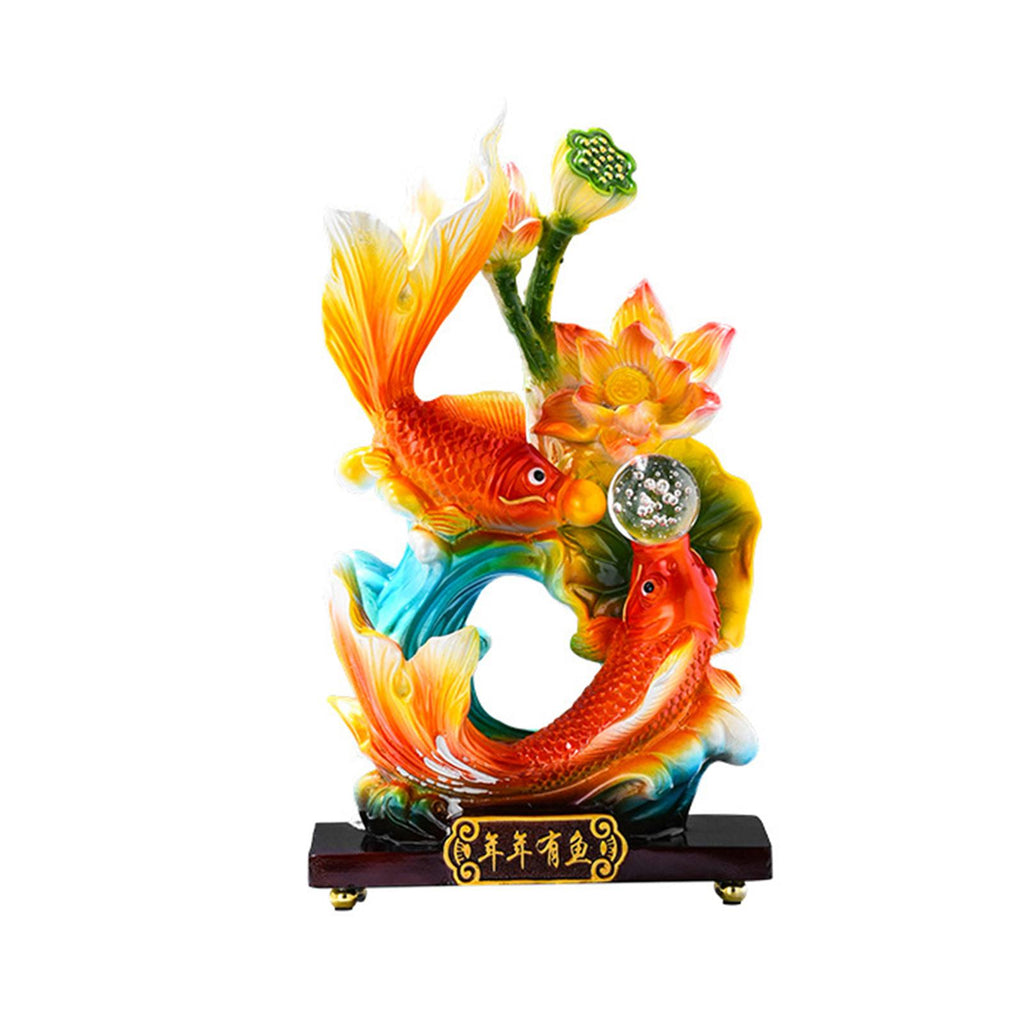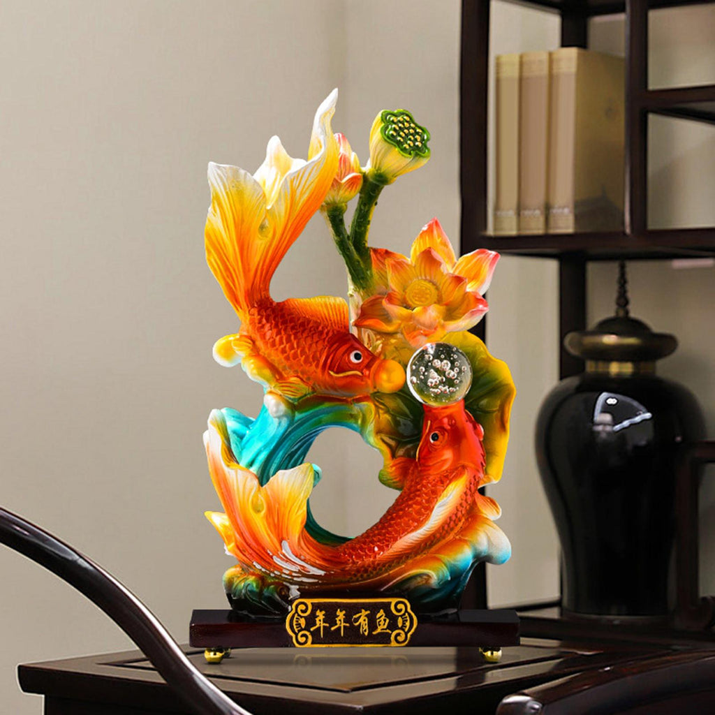 Maxbell Chinese Feng Shui Fish Statue Good Luck Sculpture for Living Room Office