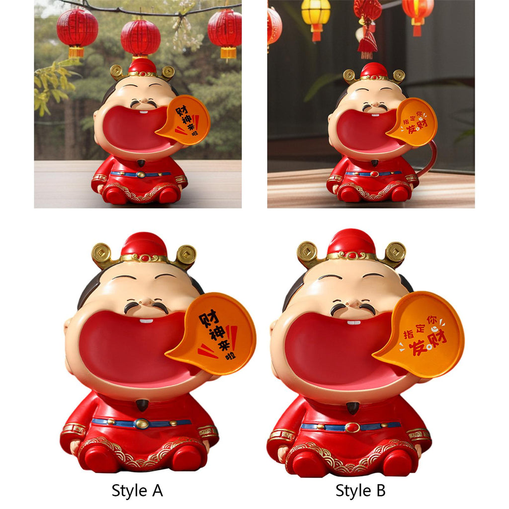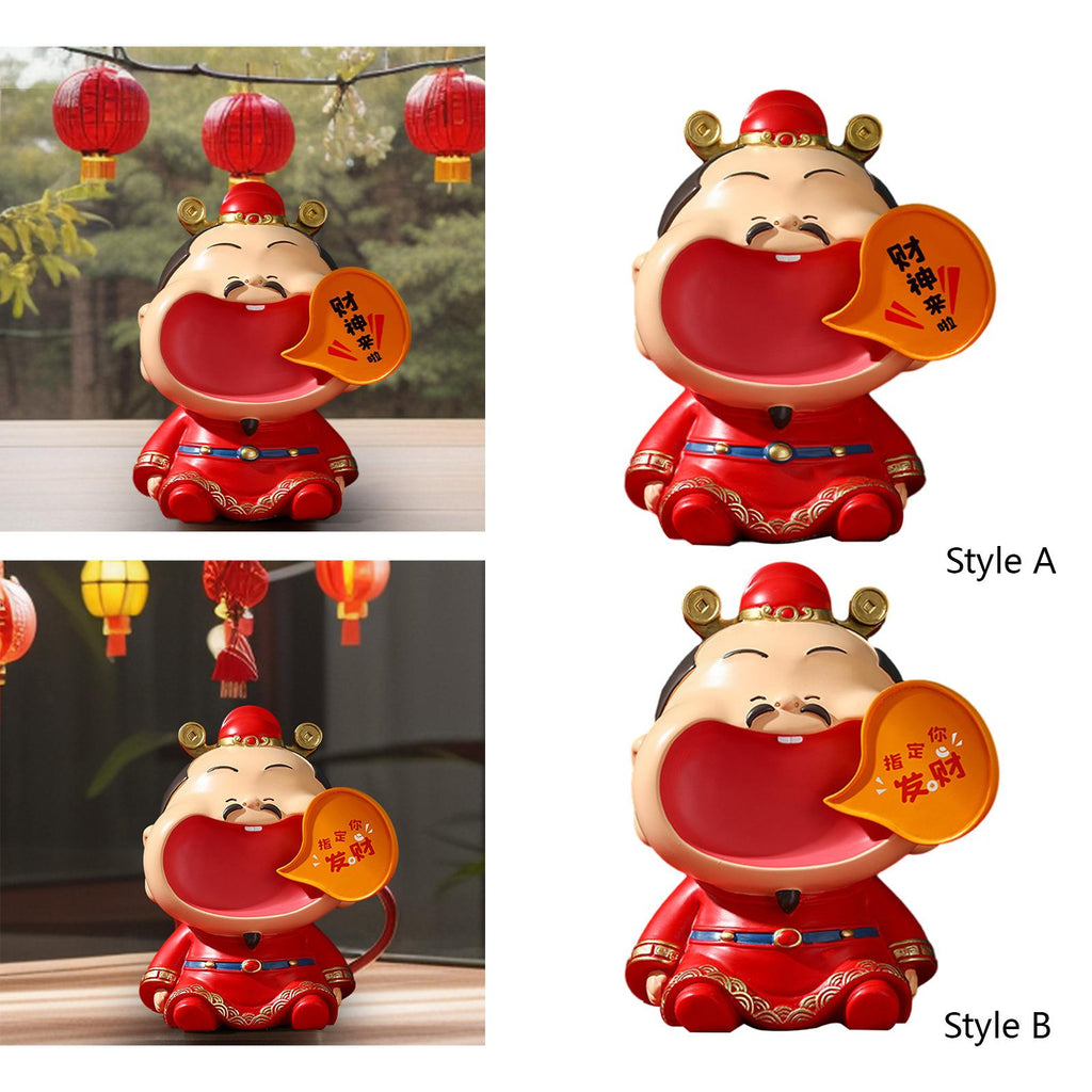 【Vivid Styling】: Cute and novelty god of fortune figurine ornament, fine workmanship, vivid detail, interesting and creative, great for home decorations.