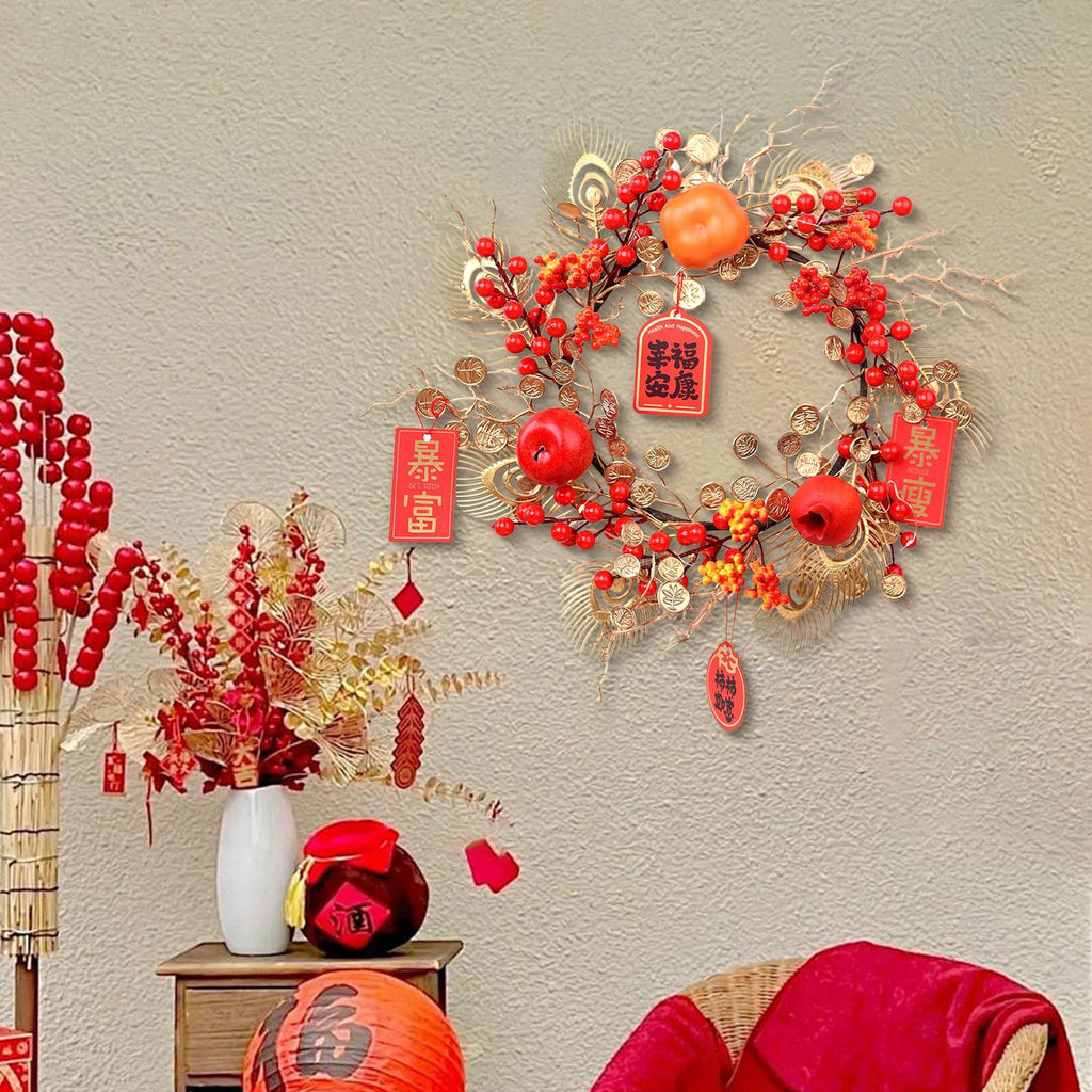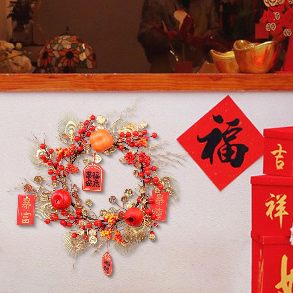 Maxbell Chinese New Year Wreath for Front Door for Wall Fireplace Spring Festival