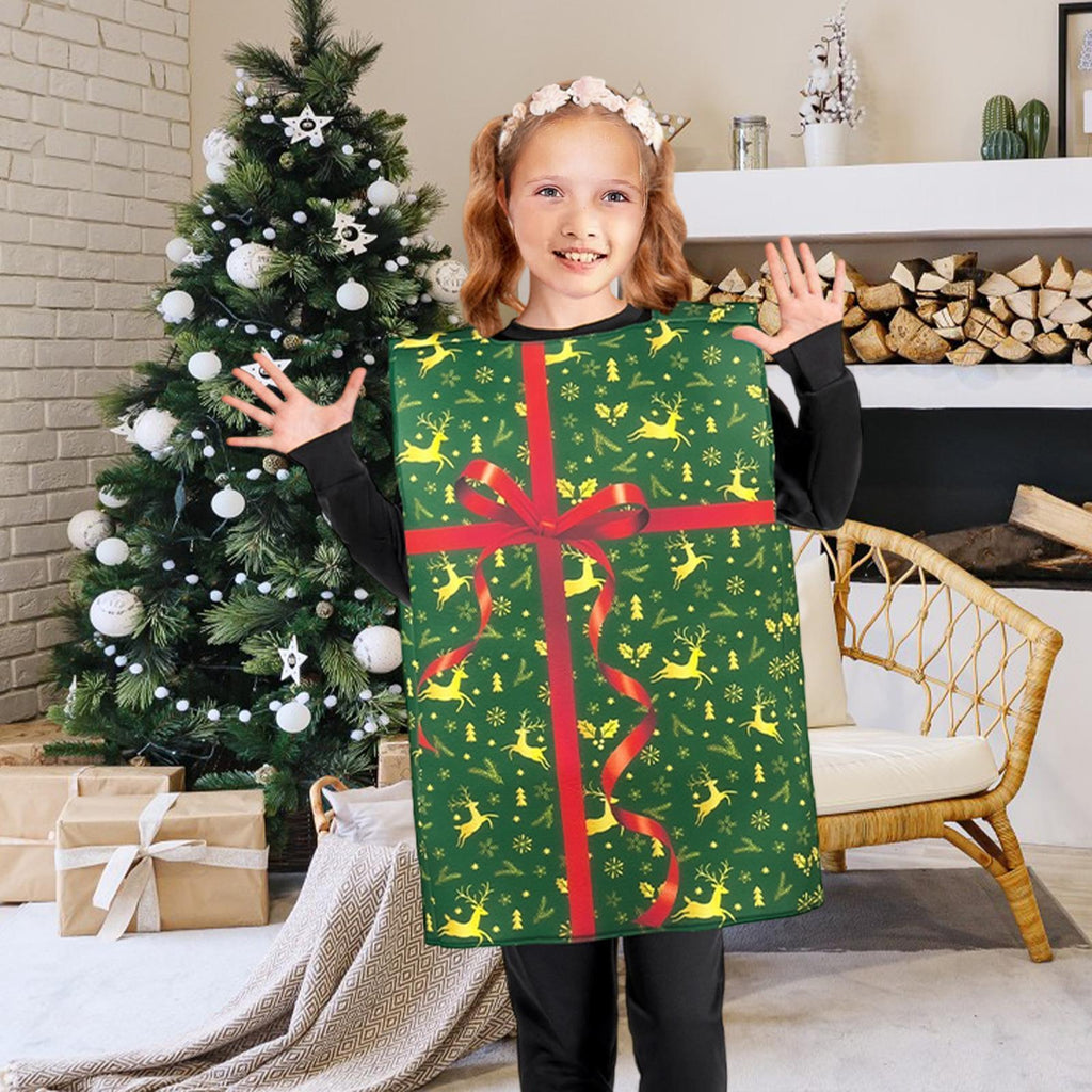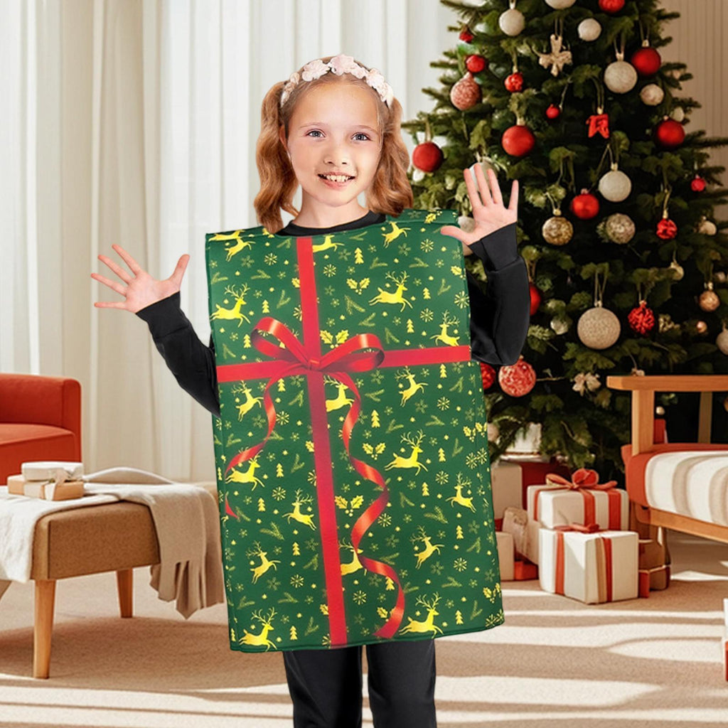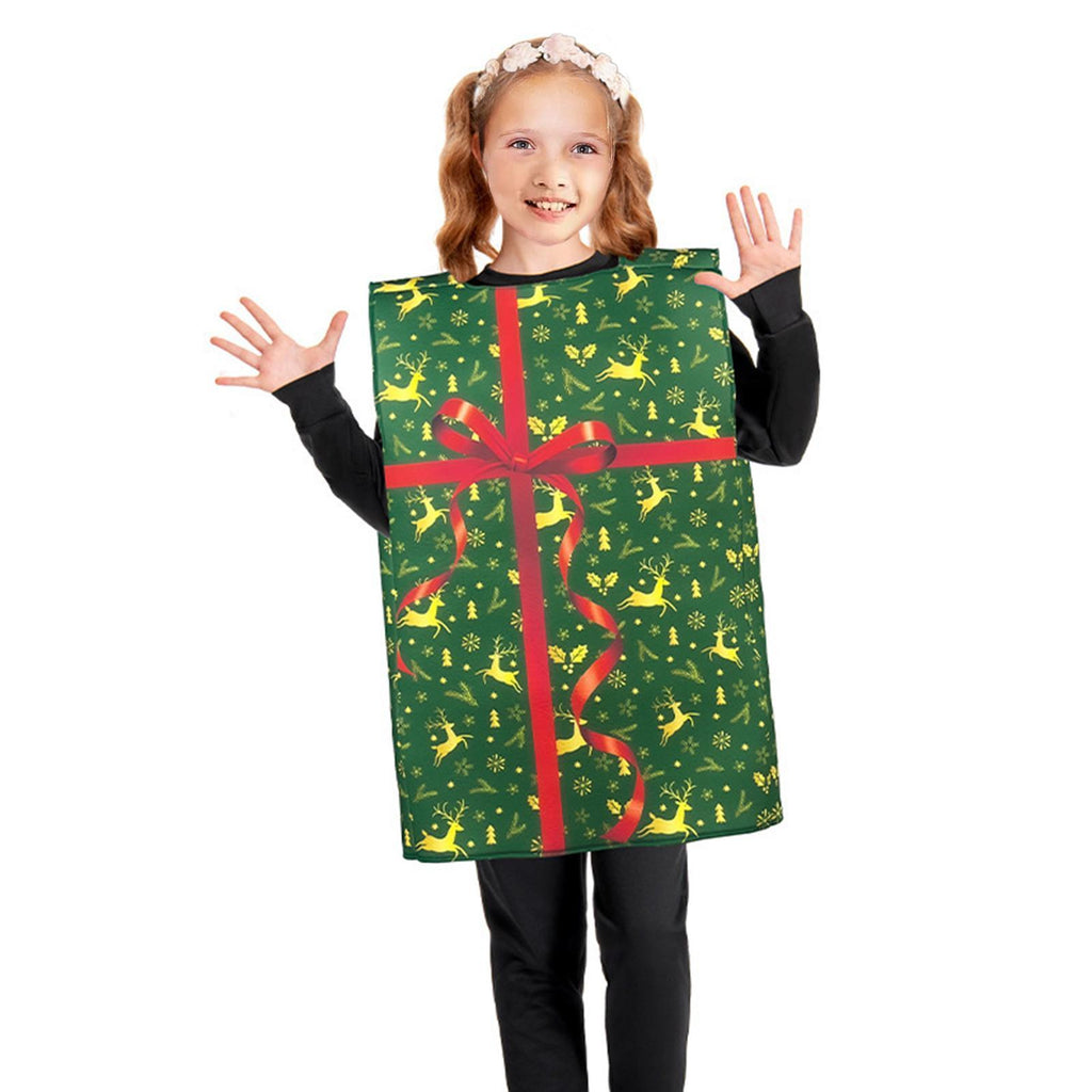 Maxbell Christmas Gift Box Costume Dress up Outfit for Role Play Birthday Masquerade Green Elk for Kids